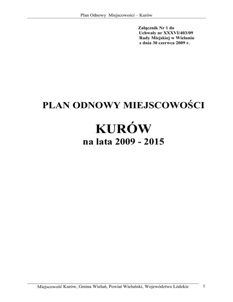 PLAN ODNOWY MIEJSCOWOŚCI KURÓW na lata 2009