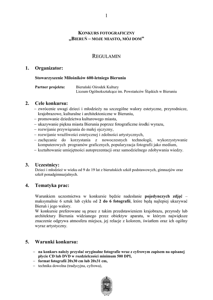 Regulamin Bieruń moje miasto mój dom