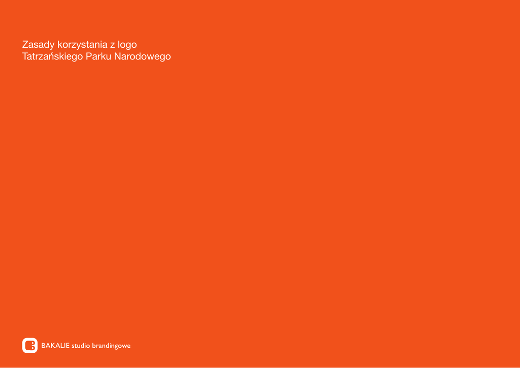 Zasady korzystania z logo Tatrzańskiego Parku Narodowego Zasady korzystania z logo Tatrzańskiego Parku Narodowego Logo Tatrzański Park Narodowy w podstawowej wersji występuje na białym tle. Ma ono dwie wersje i ściśle określoną kolorystykę. Obie wersje składają się z 2 elementów: 1. Część graficzna to ilustracja kozicy na tle niepełnego koła w kolorze niebieskim (określony dokładniej w dalszej części księgi). 2. Drugą część stanowi logotyp − typograficzny zapis nazwy parku − Tatrzański Park Narodowy − w dwóch układach poziomych: dwu- i jednowersowym. Kolor napisu to ciemno szary (określony dokładniej w dalszej części księgi). Układ i wzajemne proporcje w/w elementów w obydwu wersjach są stałe i nie mogą być zmieniane. Znak występuje jako nierozerwalne połączenie obu elementów. Niedopuszczalne jest stosowanie samej części graficznej bez części typograficznej, ani samej części typograficznej bez graficznej w materiałach instytucjonalnych. BAKALIE studio brandingowe Zasady korzystania z logo Tatrzańskiego Parku Narodowego Logo Tatrzański Park Narodowy w podstawowej wersji występuje w 2 kolorach − niebieskim i ciemno-szarym. W zależnościod specyfiki projektu, może to być przestrzeń kolorów RAL, PANTONE, CMYK, lub RGB o poniżej podanych wartościach. W wyjątkowych okolicznościach dopuszcza się stosowanie znaku w wersji monochromatycznej, opisanej w dalszej części księgi. RAL 00 40 00 PANTONE 425 U CMYK 0/0/0/80 RGB 75/75/75 RAL 250 80 20 PANTONE 283 U CMYK 49/13/0/0 RGB 122/186/230 BAKALIE studio brandingowe Zasady korzystania z logo Tatrzańskiego Parku Narodowego Pole ochronne i wielkość minimalna Zachowanie przestrzeni pola ochronnego wokół znaku jest niezbędne dla zachowania jego czytelności. W obrębie tego pola nie można umieszczać żadnych elementów graficznych i tekstowych, które mogłyby zakłócić tożsamość znaku. Do wyznaczenia pola ochronnego wersji dwuwersowej należy użyć półtorej wysokości litery T z logo w jego 100% wielkości. Dla wersji jednowersowej - wysokości litery T. Minimalna wielkość logo, w wersji podstawowej zostaje określona by nie stracić jego czytelności na niewielkich powierzchniach. Dla wszystkich nośników drukowanych najmniejsza wysokość wynosi: - dla dwuwersowej wersji znaku: 8mm. - dla wersji jednowersowej: 5mm BAKALIE studio brandingowe Zasady korzystania z logo Tatrzańskiego Parku Narodowego Wersje dodatkowe - kolorystyka Wersja na niebieskim tle - kolorystyka koła zmienia się na biały, tak samo jak napis. Kozica pozostaje szara. Znak na ciemnym tle (innym niż niebieskie) - kolorystyka koła i kozicy pozostaje taka jak w podstawowym znaku. Dodane zostaje dodatkowe białe koło (wielkości 120%niebieskiego), napis jest koloru białego. Wersja monochromatyczna - całe logo jest w kolorze czarnym. BAKALIE studio brandingowe W sytuacji, gdy nie można użyć podstawowej wersji logo na białym tle dopuszczalne są niżej opisane opcje. Znak w wersji innej, niż podstawowa może być stosowany, gdy bardziej niż podstawowy, pasuje do stylistyki otoczenia, w którym jest prezentowany. Zasady dotyczą obydwu wersji znaku. Pole ochronne w wersjach dodatkowych obowiązuje takie samo jak w znakach podstawowych. BAKALIE studio brandingowe ul. Racławicka 99, 02-634 Warszawa tel/fax +48 22 898 16 19 www.studiobakalie.pl