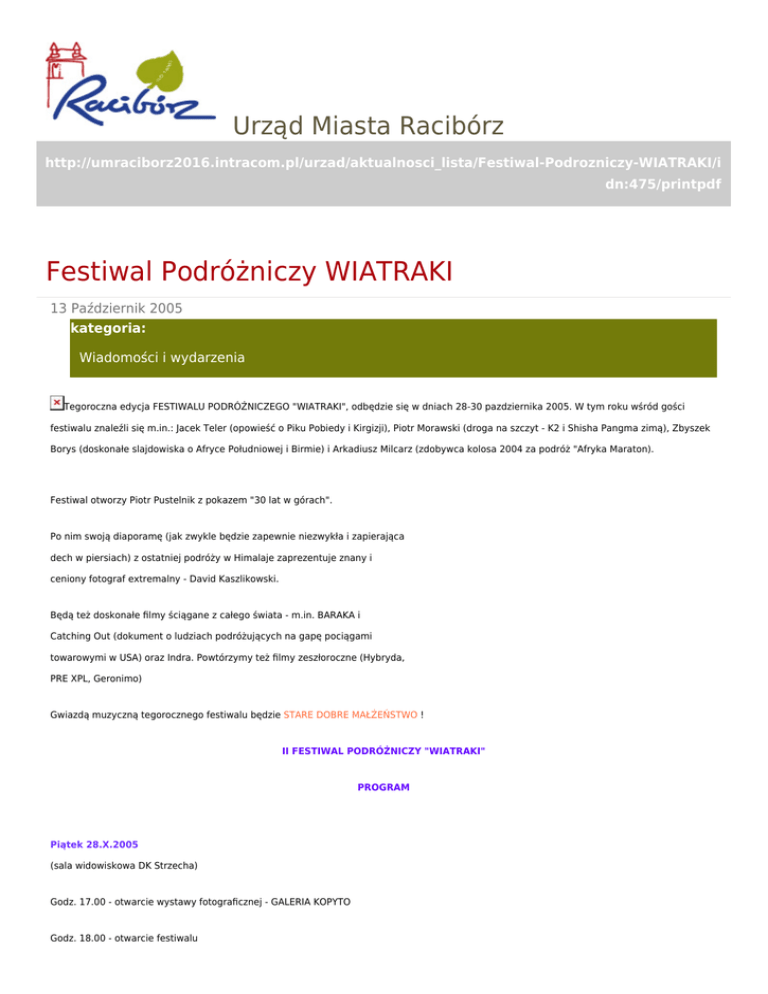 Festiwal Podróżniczy WIATRAKI - Urząd Miasta Racibórz