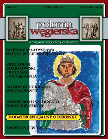 2014 • 223 LIPIEC • júLius polonia węgierska a magyarországi lengyelek havilapja Dzień św. wŁadysŁawa święto Węgierskiej polonii prezydent komorowski przyznaje odznaczenia Św. Władysław, autor obrazu: ZOLTÁN DANKA młodzież z ukrainy w budapeszcie koniec roku szkolnego w polskiej szkole dodatek specjalny o derenku spotkanie w tata CENA • ÁRA : 400 Ft Fot. B. Pál, B. Lapis Kalejdoskop życia polonijnego na Węgrzech - Święto polonii WiTAMY Spis treści Tartalomjegyzék WITAMY 3 Stare drzewa, nowe owoce Agnieszka Janiec-Nyitrai KRONIKA 4 Święto Węgierskiej Polonii - Dzień św. Władysława 2014 6 Szent László nap, a Magyarországi Lengyelség Napja Sárközi Edit 8 A Szent László napi ünnepség margójára Lapis Balázs 9 Prezydent Komorowski na Węgrzech 10 Komorowski elnök úr magas állami kitüntetéseket adott át Budapesten 10 Antall Józsefné Fülepp Klára - A Lengyel Köztársasági Érdemrend Tiszti Keresztjének birtokosa Sárközi Edit 11 Interjú Buda Gézával a lengyel érdemrendek kiosztásának napján Karaba Márta Alexandra 12 Spotkanie miast partnerskich i polskie akcenty na Festiwalu Wody, Muzyki i Kwiatów w Tata 12 Wycieczka do Sanoka Asia Priszler 12 Eger: "10 lat Solidarności 1979-1989" 13 A nemzeti barátság napja Danka Zoltán 13 Pünkösdi Óhaza látogatás: Szilézia gyöngye - Wrocław és környéke Fekete Dénes 13 Múzeumok éjszakája a Bartók zeneházban 14 "Krotosy" w Muzeum Polonii 14 Spotkanie w Domu Polskim z redaktorami kwartalnika "Akcent" Małgorzata Soboltyński 15 Polonijne warsztaty dziennikarskie Márta Alexandra Karaba 15 Chór św. Kingi w Starym Sączu Maria Schaffler NA GRANICY KULTUR 16 Kogo interesuje poezja? Tünde Trojan 16 Młodzież z Ukrainy w Budapeszcie 17 Ukrajnai lengyel diákok látogattak Kőbányára Danka Zoltán 18 Co w Internecie piszczy 18 Święto Seniorek w Domu Polskim CO BYŁO, CO BĘDZIE 19 Co było, co będzie Z ŻYCIA POLSKIEJ SZKOŁY NA WĘGRZECH 20 Lato w pełni! Ewa Rónay REFLEKSJE 21 Przesunięcie w czasie Agnieszka Janiec-Nyitrai Stare drzewa, nowe owoce Ludzie odchodzą i przychodzą, przemieszczani wiatrem historii z miejsca na miejsce, wyrywani z korzeniami przez zmiany systemów i rządów. Ale zostają po nich drzewa, które w samotności dziczeją, zmieniając swoje miejsce zameldowania z „ogrodu” na „las”. Może odzwyczajają się od ludzi, ale wciąż tkwią na posterunku, co roku na wiosnę trzymając w zanadrzu białe kwiaty, a jesienią kwaskowate jabłka. Wiatr wygrywa na ich konarach znane melodie, a te derenckie jabłonie szumią sobie cicho swoją starą gwarą, wplecione w węgierski krajobraz, zakorzenione w innej ziemi, ale jednak jakby wciąż trochę polskie. Starych drzew się nie przesadza, ale ich nasiona wciąż można przecież przenieść w inne miejsca. Za kilka lat znów mogą zaowocować. Na odpust do Derenku co roku przybywają potomkowie dawnych polskich osadników. Niedaleko przecież pada jabłko od jabłoni. Agnieszka Janiec-Nyitrai Derenckie drzewa, fot. J. Celichowski Régi fák, új gyümölcsök Az emberek jönnek és mennek. Egyik helyről a másikra sodorják őket a történelem viharai, gyökerestül tépik ki őket korszak- és rendszerváltások. Csak a fák maradnak utánuk, amelyek magányosságukban elvadulnak: zártkert helyett erdőre változik környezetük hivatali besorolása. Talán elszoknak az emberektől, mégis folytonosan őrt állnak, és tavasszal fehér virágözönbe öltöznek, ősszel pedig savanykás almáktól roskadoznak. A szél ismerős dallamokat játszik a derenki almafák ágain, ők pedig halkan susognak, régies tájszólással. Részei a magyar tájképnek, idegen – mégis a lengyellel kicsit rokon – földben gyökerezve. Felnőtt fákat már nem szokás átültetni, de a termésüket bármikor másik helyre lehet szállítani. Ott elültetve utódaik pár év múlva újból gyümölcsöt tudnak teremni. A derenki búcsúra minden évben eljönnek a hajdani lengyel telepesek leszármazottai. Hiszen az alma nem esik messze fájától. Janiec-Nyitrai Agnieszka Polonia Węgierska 3 Kronika Hajdúszoboszló Miklós Budai, obecni byli burmistrzoProgram tegoroczwie Edelény Oszkár nych ob ch o d ów Molnár, Szögligetu święta węgierskiej dr Katalin Mihálik Polonii był nadzwyTótné, wiceburmistrz czaj bogaty. W przedMiskolca Péter Pfliedzień oficjalnych uroczystości, w dniu urodzin patrona Polonii gler. Z Polski przyjechał burmistrz Siewierza Zdzisław Banaś, a węgierskiej - 27 czerwca w Hajdúszoboszló odbywał się „Dzień z Budapesztu panowie Andrzej Kalinowski – kierownik Referatu węgiersko-polskiego braterstwa”, którego głównym organiza- Konsularnego Ambasady RP i Jarosław Bajaczyk, wicedyrektor torem była Grupa Rekonstrukcji p.w. św. Władysława, prowa- Instytutu Polskiego. dzona przez Gézę Nagya w Szabolcs, a współorganizatorem - obok biura turystycznego Nonprofit - Ogólnokrajowy Samo- Laureatami nagród polonijnych w 2014 roku zostali: nagrody rząd Polski. Obchody w Hajdúszoboszló rozpoczęła msza święta św. Władysława burmistrz Csepela i poseł ZN Węgier dr Szilárd w kościele p.w. św. Władysława sprawowana przez o. Artura Németh, a nagrody „Za zasługi dla węgierskiej Polonii” otrzyGórskiego OP i ks. Józsefa Liptáka. Następnie odbyło się odsło- mali: Elżbieta Molnárné Cieślewicz, państwo Wiesława i Tamás nięcie tablicy „Na pamiątkę węgiersko-polskiego braterstwa Bárkányowie i Koło Przyjaciół Muzeum w Isaszeg. Nagrodę oraz kanonizacji Jana Pawła II.” Towarzyszyły temu: wystawa specjalną wręczono zespołowi „Polska Drenka”. W tegorocznym replik węgierskich i polskich relikwii, koncert zespołu muzyki święcie uczestniczyli też polscy i węgierscy goście święta mikrośredniowiecznej „Igriczek”, przemarsz w strojach średniowiecz- regionu, które odbywało się w Edelény. nych, salwy arm