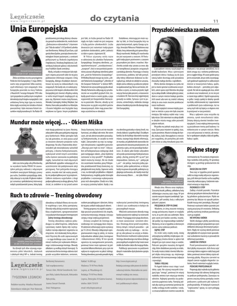 do czytania Unia Europejska Marta Miara Kierownik Centrum Korepetycji GSM 509 173 501 mctlumaczenia.eu Zbliża się kolejna rocznica przystąpienia Polski do Unii Europejskiej (1 maja 2004r.) warto więc przypomnieć kilka ważniejszych informacji z tym związanych. Unia Europejska powstała na mocy Traktatu z Maastricht 1wszego listopada 1993 roku i jest gospodarczo-politycznym związkiem demokratycznych krajów europejskich. Jest unikatową formą tego typu na świecie, która nigdy wcześniej nie istniała w historii powszechnej i była nieznana historii stosunków międzynarodowych. Na fladze UE przedstawiony jest okrąg złożony z dwunastu gwiazd na niebieskim tle, motto brzmi „Zjednoczona w różnorodności” a hymnem jest ”Oda do radości” z IX Symfonii Ludwika van Beethovena. Walutą UE jest Euro, czyli grecka litera Epsilon, przecięta dwoma równoległymi liniami poziomymi, a centrami politycznymi są: Bruksela (egzekutywa i legislatywa), Strasburg (legislatywa), Luksemburg (trybunał sądowy i izba kontroli) oraz Frankfurt (bank centralny). Myślę, że każdy w mniejszym lub większym stopniu przyswoił sobie do tej pory podstawowe informacje związane z Unią Europejską, dlatego chciałabym skoncentrować się raczej na ciekawostkach z nią związanych. Nie każdy wie, że waluta przypisywana ściśle krajom członkowskim Unii Europejskiej jest również oficjalną walutą w wielu innych krajach znajdujących się poza nią. Wymienić można tutaj Kosowo, Monako, Czarnogórę, Andorę, Watykan, San Marino, francuskie posiadłości na Atlantyku i Oceanie Indyjskim oraz brytyjskie bazy wojskowe na Cyprze. Innym przykładem Przyszłość mieszka za miastem jest fakt, że liczba gwiazd na fladze UE nigdy nie była i nadal nie jest związana z liczbą państw członkowskich. Liczba dwanaście jest natomiast tradycyjnym symbolem doskonałości, pełni i jedności co idzie w parze z dążeniami UE. W Polsce używamy wielu nazw w odniesieniu do członków Parlamentu Europejskiego. Stosujemy określenia: „europarlamentarzysta”, „eurodeputowany”, „europoseł”, choć w rzeczywistości powinniśmy używać oficjalnego określenia jakim jest: „poseł do Parlamentu Europejskiego”. W Wielkiej Brytanii stosuje się zwrot:„członek Parlamentu Europejskiego” („Member of the European Parliament” w skrócie MEP). Parlament nie używa jednego języka obrad. Obrady Parlamentu odbywają się symultanicznie we wszystkich językach Unii, tzn. każdy poseł mówi w swoim języku, a jego wypowiedź jest bezpośrednio tłumaczona na pozostałe. Obecnie, obrady są też tłumaczone na języki wszystkich państw stowarzyszonych, które mają prawo biernego uczestnictwa w obradach. Dodatkowo, interesującym może wydać się fakt, że Unia Europejska leży na pięciu kontynentach, oprócz Europy są to: Azja, Ameryka Północna i Południowa oraz Afryka. Inną ciekawostką jest sprawa klasyfikacji marchewki. Według UE marchewka nie jest warzywem a owocem. W Portugalii tradycyjnym przetworem a zarazem przysmakiem jest dżem z marchwi. Marchewka została więc uznana za owoc aby nie komplikować przepisów związanych z produkcją dżemów. Pozostając w branży żywieniowej, podobno, był taki pomysł, żeby teksty reklamowe drukować na skorupkach jaj. Jednak nie zdobył on uznania, dzięki czemu reklamy są widoczne jedynie na opakowaniach jaj. Tak na sam koniec, kilka słów o czymś, co można przytulić, bądź wręczyć komuś jako prezent, a mianowicie o maskotce UE. Nosi ona imię najjaśniejszej gwiazdy na niebie, Syriusza i jest to pocieszna, uśmiechnięta, niebieska stonoga ubrana charakterystycznie dla danego kraju Unii Europejskiej. Mundur może więcej… - Okiem Miśka Misiek Jakiś czas temu jadąc ulicą Wrocławską na wysokości banku PEKAO SA zauważyłem policyjny radiowóz z włączonymi światłami awaryjnymi blokujący prawy pas ruchu. Zwolniłem przejeżdżając obok, żeby zobaczyć co się stało. W głowie miałem już scenariusz spektakularnej interwencji rosłych przedstawicieli prawa, którą będę miał okazję podziwiać na żywo. Niestety, zobaczyłem tylko pana policjanta stojącego przy bankomacie. Widać pieniądze były mu tak potrzebne, że stróż prawa uznał za stosowne złamanie przepisów ruchu drogowego. Na ulicy Chojnowskiej obserwowałem jak nieoznakowany samochód policyjny, z dwoma funkcjonariuszami, wykonywał wśród innych uczestników ruchu manewr zawracania na podwójnej ciągłej. Samochód nie miał włączonych jakichkolwiek sygnałów wskazujących na uczestniczenie lub podejmowanie akcji pościgowej. Pani policjantka kierująca autem, musiała mieć tak ważny powód, by nie podporządkowywać się przepisom. Całkiem niedawno wyjechałem z drogi podporządkowanej na drogę główną. Pech chciał, że zrobiłem to tuż przed autem Straży Granicznej. Auto to ani nie musiało hamować, ani odbijać ode mnie. Nie wiem czym, ale tak zdenerwowałem prowadzącą funkcjonariuszkę, że zaczęła na mnie trąbić. Zatrzymałem się więc na następnym skrzyżowaniu i zapytałem grzecznie: „Dlaczego pani trąbi na mnie”. Usłyszałem od funkcjonariusza siedzącego obok pani następujące zdanie: „Zaraz będziemy rozmawiać w inny sposób!!!”. Przykładów takich można by mnożyć. Ale nie chodzi mi o oczernianie munduru, pracy Policjantów, przedstawicieli Straży Granicznej, czy jakiejkolwiek innej służby. Zapewne wielu z nas, na dziesiątki przykładów o błędach funkcjonariuszy, mogłoby podać dziesiątki przykładów z wzorowego wykonywania przez nich obowiązków. Chodzi mi o fakt, że wszyscy jesteśmy ludźmi. Każdy z nas ma określoną potrzebę w danej chwili, ma chwilę słabości i popełnia błąd. Chciałbym bardzo, by do każdego obywatela naszego miasta, naszego kraju dotarła informacja, że mundur, ani jakiekolwiek stanowisko nie upoważnia do stawania ponad prawem, do patrzenia z góry, 