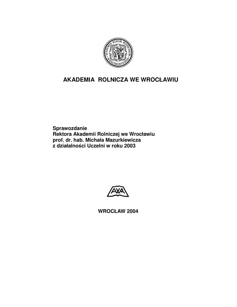 2003 rok - Uniwersytet Przyrodniczy we Wrocławiu