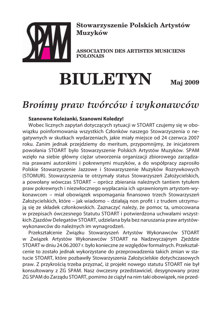 Maj 2009 - Stowarzyszenie Polskich Artystów Muzyków
