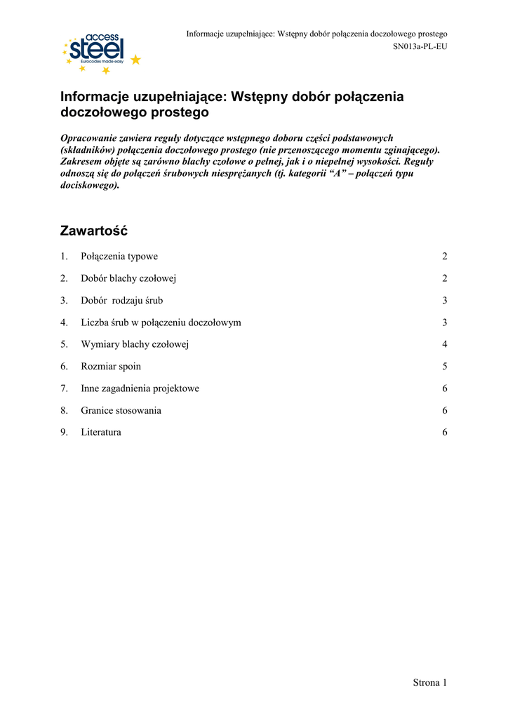 Informacje uzupełniające: Wstępny dobór połączenia doczołowego
