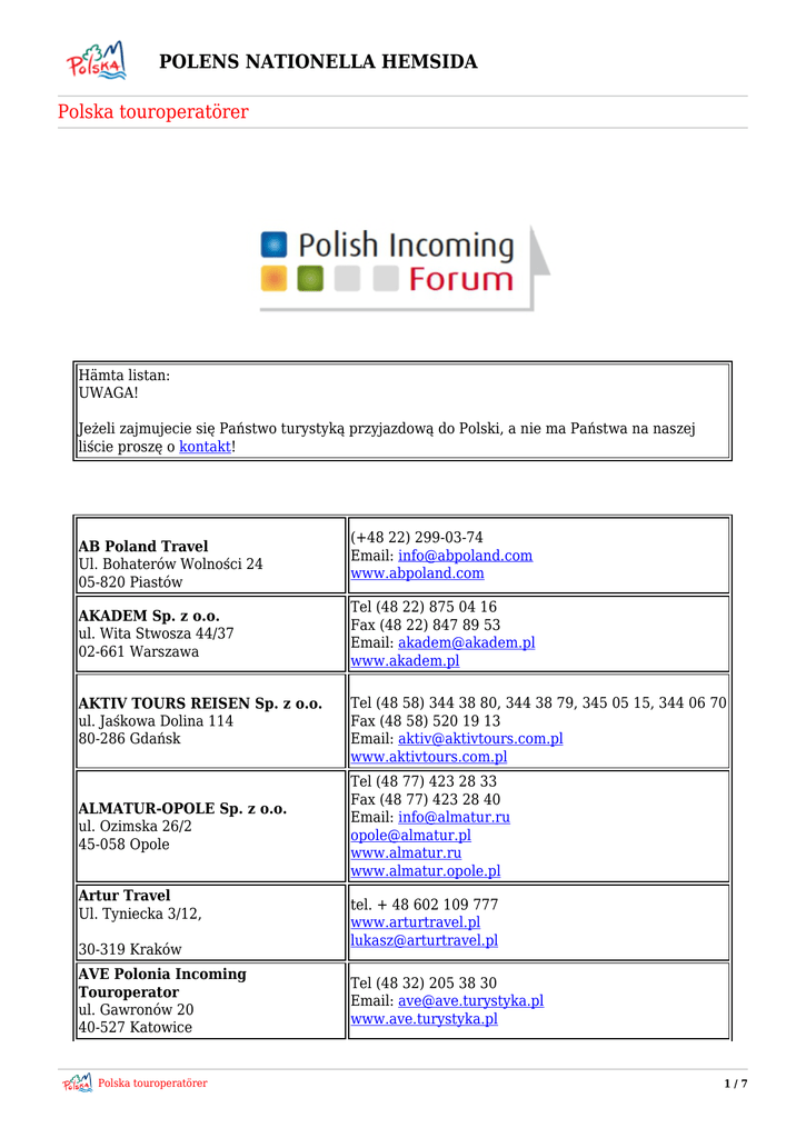 POLENS NATIONELLA HEMSIDA Polska touroperatörer