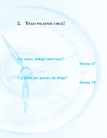 Tego właśnie chcę! 2. TEGO WŁAŚNIE CHCĘ! Czy wiesz, dokąd zmierzasz? Strona 17 Czy jesteś już gotowy do drogi? Strona 19 16 Jeśli znasz cel, odnajdziesz drogę 2.1. Twoje cele wskażą Ci drogę Czy pozwalasz, by Cię wciąż popychano, a Ty tylko obserwujesz, co przyniesie czas? Jeśli tak, to pewnie podczas rozmów często używasz nieokreślonego sformułowania „być może”. Gdy planujesz wykonanie zadań pod kątem celów, koncentrujesz się na nich i wszystko przeprowadzasz z zaangażowaniem, wtedy także rozmawiasz w taki sposób, zarówno z samym sobą jak i z innymi osobami. I promieniujesz taką ufnością, że Twoje cele zostaną osiągnięte – niezależnie od tego, jakie pułapki na Ciebie czyhają. Cele są w życiu czymś pięknym. Wskazują nam drogę, spełniają życzenia i pomagają w urzeczywistnianiu marzeń. Cele zmuszają nas do komunikacji nastawionej na ich osiągnięcie. Znasz swój cel? Oczywiście! – odpowiesz. Chcesz zająć określoną pozycję, osiągnąć sukces za pomocą konkretnej cechy, sprzedać swoje kompetencje w profesjonalny sposób. Ale czy rzeczywiście znasz swój cel? Czy choć raz przemyślałeś dokładnie i rzetelnie swoje kwalifikacje? Czy myślałeś o poświęceniu, którego będzie wymagało osiągnięcie Twego celu? Czy wiesz, co Cię spotka, gdy rzeczywiście będzie on już zrealizowany? Czy chociaż raz jasno i obiektywnie sformułowałeś swój cel, swoje zamiary i możliwości? 17 Tego właśnie chcę! Pomoże Ci to ustalić proste ćwiczenie. Nazywam je ćwiczeniem filmowego exposé Wyobraź sobie następującą sytuację: autor scenariusza, który już od wielu lat bezskutecznie próbuje sprzedać niezwykły scenariusz firmom produkcyjnym, telewizjom itd., zupełnie przez przypadek i nieprzygotowany spotyka w windzie na lotnisku Stevena Spielberga. Zebrał się na odwagę, zagadnął go oraz się przedstawił – i okazało się, że Spielberg jest bardzo miłym człowiekiem. Ale niestety bardzo mu się śpieszy. „Dobrze”, mówi i spogląda na zegarek. „Mam minutę. O co chodzi w pańskim filmie?”. Tak jak ten autor scenariusza był w stanie w paru porywających zdaniach streścić to, co było najważniejsze w jego pomyśle, tak i Ty musisz umieć krótko, zwięźle, ale i w bardzo ciekawy sposób streścić swój profil, najważniejsze kompetencje oraz cele swojego działania. Spróbuj! Czy jesteś w stanie w ciągu minuty opowiedzieć o sobie, swoich talentach i zamiarach? Czy użyjesz jasnych sformułowań, które opiszą istotę Twojego profilu? Jeśli Ci się to udało – gratuluję; wiesz już dokładnie, co w Tobie jest tak szczególnego i w którą stronę masz się udać. Jeśli jednak początkowo Ci się nie powiedzie, przeanalizuj przyczyny tej sytuacji: Czy nie jesteś pewien pewnych punktów, a jeśli tak, to dlaczego? Czy patrzysz na siebie przez pryzmat swojej konkurencji, odwracając tym samym uwagę od własnej osoby, 18 Cel główny osiąga się poprzez wiele celów szczegółowych a Twoje sformułowania wynikają praktycznie jedynie z porównań? Czy przedstawienie swojego profilu wydaje Ci się nieautentyczne oraz pyszałkowate w nieprzyjemny dla Ciebie sposób? Przemyśl to. Możesz nauczyć się wiele o sobie i swoim celu – a na końcu oprócz odpowiednio wyrażonych myśli zyskasz jasność, która codziennie będzie Ci pomagać, byś nie stracił z oczu własnego planu, a pewnego dnia sprawi, że zaczarujesz swego osobistego „Stevena Spielberga”. 2.2. Zaplanuj osiągnięcie swoich celów! Cel główny, który wciąż powinien być przez Ciebie jasno formułowany, osiągniesz jedynie za pomocą pomniejszych napotkanych przez Ciebie celów. Zacznij od gruntownych przemyśleń dotyczących Twojego występowania, ukazywania się innym, obrania odpowiedniej drogi i może wyboru współtowarzysza oraz od zaplanowania codziennych kroków. Wykorzystaj przy tym następujące wskazówki ogólne: Spisz plan każdego dnia. W ten sposób każdego dnia będziesz miał wyznaczony kierunek, a pod koniec możesz sprawdzić, co udało Ci się zrealizować. Następnie będziesz mógł powtórzyć lub zmodyfikować swoje cele w planowaniu na następny dzień – tak długo, aż będziesz mógł 19 Tego właśnie chcę! odhaczać cel po celu. Ale uwaga: przy określaniu zamierzeń nie wolno przecenić swoich możliwości. „Dzisiaj zostanę sławny na całym świecie” byłoby na przykład przesadzone i – jeśli w ogóle osiągalne – to do realizacji takiego zamierzenia potrzebowałbyś wyjątkowych kroków. Planuj realistycznie, unikaj zbyt wysoko i zbyt nisko ustawionej poprzeczki. Bądź otwarty na sprawy nieprzewidywalne oraz „niezaplanowane szanse” Jeśli wszystko sobie zaplanujesz co do minuty, będziesz nieelastyczny. Zaplanuj więc zawsze trochę mniej – w takim wypadku podczas rzeczowej rozmowy możliwy stanie się także spontaniczny dialog. Wtedy może zdołasz entuzjastycznie zareagować na zaproszenie, którego skutki dla Twojej przyszłości będą nieocenione. Ważne jest, byś pozostawił sobie rezerwę czasową właśnie na takie nieprzewidziane rozmowy. W przeciwnym razie będziesz zestresowany albo Twój czas będzie źle zaplanowany, tak że w ogóle nie dostrzeżesz szansy. A jeśli w tych rezerwach czasowych nie wydarzy się nic, a jedynie wypijesz kawę czy w spokoju przeczytasz ciekawy artykuł, będzie to dla Ciebie tak samo korzystne – gdyż podczas wystąpienia po takiej przerwie będziesz odprężony i dobrze poinformowany – a to przecież jest w PR najważniejsze. Naucz się czasami odmawiać, gdy coś nie jest zgodne z Twoimi zamiarami bądź mogłoby wywołać konflikt interesów. Jasny komunikat, że chcesz się jeszcze przez 20 Naucz się czasami mówić „nie” jakiś czas skoncentrować na pewnej sprawie, nie jest oznaką słabości, lecz podkreśla Twój profesjonalizm. Nie daj się odwieść od swojej koncepcji. Nie przyjmuj ślepo każdego