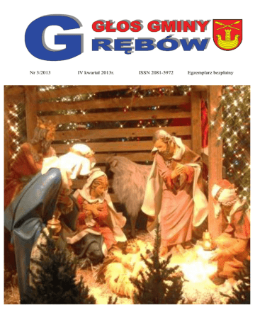 Nr 3/2013 IV kwartał 2013r. ISSN 2081-5972 Egzemplarz bezpłatny Drodzy Mieszkańcy Gminy Grębów Życzymy, aby zbliżający się Nowy 2014 Rok przyniósł radość z tego co jest, nadzieję na to co przed nami, uśmiech i pogodę ducha na każdy nadchodzący dzień, by nie zabrakło wzajemnej życzliwości i zrozumienia, aby wszystkie plany, nawet te najśmielsze, udało się zrealizować. Szczęścia, dzięki któremu te zamierzenia się spełnią oraz zdrowia, szczególnie zdrowia, które jest bezcenne. Z całego serca życzymy, by Nowy Rok był wypełniony tym co dobre, piękne i szczęśliwe, a dostatek i pomyślność nigdy Państwa nie opuszczały. Wójt Gminy Grębów Przewodniczący Rady Gminy Kazimierz Skóra Jerzy Drewniak 2 Szanowni Państwo ! Święta Bożego Narodzenia i nadchodzący Nowy Rok to najbardziej oczekiwane przez wszystkich chwile. Towarzyszą im zawsze refleksje i radosne przeżycia. W grudniowe dni i wieczory myślimy o tym co minęło i planujemy przyszłość. Łamiemy się opłatkiem, śpiewamy piękne, polskie kolędy, składając sobie życzenia wierzymy, że nowy rok, będzie dla nas dobrym czasem, że spełnią się nasze marzenia i zamierzenia. Dla mnie jest to okazja, by podsumować miniony rok, przypomnieć Państwu o tym, co zrobiliśmy, przedstawić także plany na nowy 2014 rok. Stwierdzić należy, że 2013 rok był dobry dla naszej Gminy, możemy być zadowoleni, bo wykonaliśmy zadania, których powodzenie realizacji w dużym stopniu zależało od naszej troski, ofiarności i zaangażowania, często też uporu i determinacji. Skutecznie korzystaliśmy z możliwości pozyskania dla wielu przedsięwzięć funduszy unijnych, dobrze współpracując z Posłem na Sejm Mirosławem Plutą, władzami naszego województwa oraz z naszymi radnymi powiatowymi. W wykorzystaniu funduszy unijnych wśród najlepszych samorządów – gmin wiejskich gmina Grębów znalazła się w pierwszej setce spośród 1576 ocenianych gmin wiejskich w kraju, co stawia ją na piątym miejscu w województwie podkarpackim. Na tej podstawie stwierdzić należy, iż stale inwestujemy w rozwój infrastruktury oraz w mieszkańców, którzy są jej najcenniejszym zasobem. Rok 2013 przyniósł naszej Gminie szereg pozytywnych zmian. Zrealizowano bądź rozpoczęto realizację wielu inwestycji o łącznej wartości ponad 5 mln zł. Wspomnę tylko o tych najważniejszych: zakończono rozpoczęty w 2011r. Projekt pn. „Modernizacja ujęcia i stacji uzdatniania wody w miejscowości Wydrza wraz z budową sieci wodociągowej osiedla Jamnica i Krawce”. Całkowita wartość zadania 3 556 198,56zł; w tym dofinansowanie ze środków unijnych: 2 481 777,16zł. zakończono projekt „Modernizacja publicznej infrastruktury oświatowej w Gminie Grębów, w ramach którego zmodernizowano Szkołę Podstawową w Zabrniu oraz salę gimnastyczną w Zespole Szkół w Stalach. Ogólna kwota zadania: 644 850,24zł, dofinansowanie: 532 101,11zł. w październiku zakończono budowę boiska sportowego w Żupawie - wykonano płytę boiska z nawierzchnią z trawy naturalnej, ogrodzenie, piłkochwyty, budynek szatniowy, kabiny dla zawodników, ławki dla widzów oraz alejki utwardzone tłuczniem. Całkowity koszt zadania wyniósł 303 114,36zł. w ramach modernizacji Domu Ludowego w Zabrniu wykonano ogrzewanie gazowe budynku, wymieniono stolarkę okienną i drzwiową, ocieplono budynek, wykonano nową elewację, pomalowano dach oraz ściany wewnętrzne, wykonano podjazd z kostki betonowej oraz bramę ogrodzeniową. Całkowity koszt wyniósł: 138 907,11zł. 3 bardzo ważnym zadaniem było rozpoczęcie planowanej od dawna budowy kanalizacji sanitarnej w miejscowości Żupawa. W wyniku realizacji powstanie ok. 13 km sieci kanalizacji oraz 10 przepompowni ścieków. Umowa z wykonawcą robót budowlanych została podpisana w dniu 7 września 2013r. na kwotę 2 046 851,17zł brutto. Planowany termin zakończenia inwestycji to 2015r. doprojektowano i dobudowano 20 odcinków kanalizacji w miejscach, gdzie mieszkańcy mieli utrudnione bądź niemożliwe podłączenie się do sieci kanalizacji w miejscowościach Wydrza, Stale i Krawce. Wartość zadania: 79 335,00zł. wykonano modernizację budynku weterynarii w Grębowie - ze środków własnych za kwotę: 45 466,83zł brutto. Zostało wymienione pokrycie dachowe, okna i drzwi zewnętrzne, pomalowano elewację. W ramach inwestycji drogowych przebudowano 8 odcinków dróg gminnych o długości ponad 4 km za 904 529,52zł brutto, m.in. drogę gminną Stale-Rokita I i II o długości 1400 m za kwotę 438 947,84zł brutto, z czego 209 687,00zł pozyskano ze środków powodziowych. Na przebudowę drogi gminnej Grębów-Zabrnie o długości 537 mb pozyskano 53 369,21zł brutto z budżetu Województwa Podkarpackiego, przy wartości zadania 66 711,51zł. Dokonano przebudowy chodników w centrum Grębowa o łącznej długości ok. 600 mb. Cieszy fakt, że została przebudowana, długo oczekiwana przez mieszkańców Grębowa, droga serwisowa wzdłuż obwodowej Grębowa o długości ok. 1 km za kwotę 201 288,00zł brutto pokryta w całości z budżetu Gminy. W roku bieżącym w budżecie Gminy zaplanowano środki, które zostały przeznaczone na zadania w zakresie utrzymania urządzeń melioracyjnych tj. na konserwację gruntowną rowów, odbudowę oczek wodnych będących jednocześnie ważnymi zbiornikami retencyjnymi oraz odbudowę przepustów melioracyjnych, a także opłaty składki członkowskiej za meliorację na mieniu gminnym. Ogólna wartość zadania wyniosła: 58 338,59zł. W kończącym się roku wdrażaliśmy zapisy ustawy o utrzymaniu czystości i porządku w gminach, podjęto szereg ważnych uchwał; opracowano: Regulamin utrzymania czystości i porządku w Gminie, wzór deklaracji ustalono stawkę opłat, przeprowadzono szereg kampanii informacyjnych. Następnie, w drodze przetargu nieograniczonego, wyłoniono wykonawcę zadania tj. Miejski Zakład Komunal