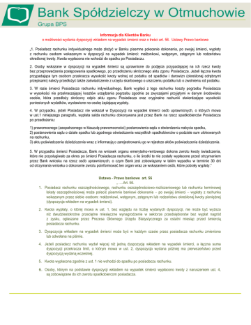 Informacja dla Klientów Banku o możliwości wydania dyspozycji