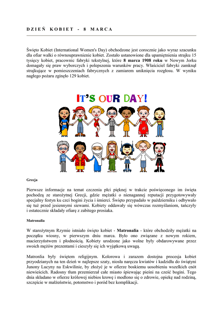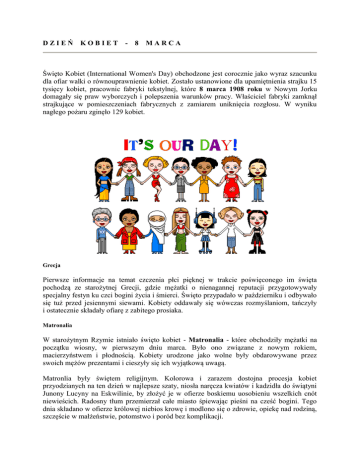 głosu. Rok później kobiety w tych samych krajach obchodziły Dzień Kobiet.