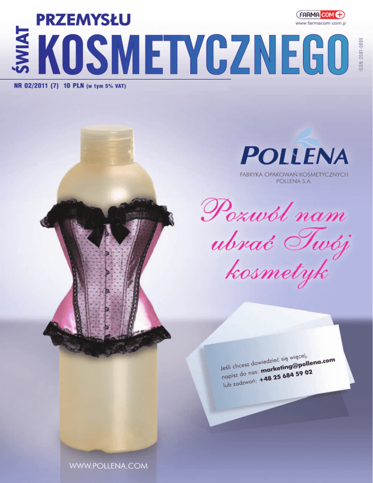 ISSN: 2081-089X NR 02/2011 (7) 10 PLN (w tym 5% VAT) LABORATORIUM MIKROBIOLOGICZNE • testy konserwacji • monitorowanie środowiska wytwarzania • badanie powietrza metodą wolumetryczną • badania wody przeznaczonej do spożycia przez ludzi – posiadamy zatwierdzenie Państwowej Inspekcji Sanitarnej • skuteczność roztworów środków dezynfekujących • badanie wody produkcyjnej zespół wysoce wykwalikowanych mikrobiologów z wieloletnim doświadczeniem - mikrobiologia przemysłowa zwalnianie serii i certykacja know how w zakresie mikrobiologii przemysłowej niestandardowe prace badawcze na produktach i przedmiotach użytku nadzór nad jakością portfolio certykaty tel./fax: +48 22 810-80-17 e-mail: [email protected] www.mikrolab.waw.pl spis treści 17 26 12 8 Dobra Praktyka Produkcyjna w przemyśle kosmetycznym 12 Testy kontaktowe – ich rola w badaniu kosmetyków 2/2011 14 Kosmetyki do cery wrażliwej 17 Raport z Oceny Bezpieczeństwa Kosmetyku 21 Perfumy pachnące prawie jak oryginalne 24 Warto spróbować „homogenności”… e-w ydanie do pobrania na: www.farmacom.com.pl 34 40 38 26 30 Nowości w produktach kosmetycznych 38 Jak opakowanie współtworzy produkt? Polielektrolity i ich wpływ na woski 40 Interpack 2011 46 in-cosmetics 2011 48 Cosmoprof Worldwide 2011 WOSKI do stosowania w procesie NA ZIMNO 32 Lecytyna w kosmetyce – właściwości i zastosowanie 34 Z niezbędnika technologa Stylizacja włosów e-w ydanie do pobrania na: www.farmacom.com.pl 2/2011 Szanowni Państwo Maria Kubsz redaktor wydania „Świat Przemysłu Kosmetycznego” Te kosmetyki stoją w każdej łazience. Znają je nasze mamy oraz babcie, swoją linię produktów mają też panowie. Pierwszy krem powstał ponad sto lat temu… mowa oczywiście o firmie Nivea jednej z wiodących międzynarodowych firm w kategorii pielęgnacji skóry, którą już niedługo będziemy mogli zobaczyć od kuchni, zwiedzając fabrykę produkcyjną podczas organizowanego przez naszą redakcję już po raz drugi Kongresu Świata Przemysłu Kosmetycznego. Gorąco zachęcam do uczestnictwa w tym wydarzeniu, które odbędzie się 13-14 października w Poznaniu w hotelu Novotel. Oprócz mocnego programu merytorycznego Kongres ten wzbogacony będzie o wystawę stoisk, na których firmy przedstawią ciekawe rozwiązania dla przemysłu kosmetycznego. Wieczorem odbędzie się uroczysta gala, podczas której zostaną rozlosowane nagrody ufundowane przez firmę Nivea oraz wydawnictwo Farmacom, a całość zostanie uwieńczona występem znanego kabaretu, którego nazwa pozostanie tajemnicą do samego końca. W oczekiwaniu na kongres zachęcam do lektury wakacyjnego wydania kwartalnika -Świat Przemysłu Kosmetycznego. Z okazji zbliżającego się lata w imieniu całej redakcji życzę Państwu wspaniałego wypoczynku. Rada Programowa: dr n. chem. Anna Oborska Ewa Starzyk – Dyrektor ds. techniczno-legislacyjnych – Polskie Stowarzyszenie Producentów Kosmetyków i Środków Czystości – Dyrektor Naukowy – Polski Związek Przemysłu Kosmetycznego Spis reklamodawców: Kwartalnik Wydawnictwa FARMACOM Wodzisław Śląski 44-300 ul. 26 Marca 31/11 farmacom @farmacom.com.pl www.farmacom.com.pl Redaktor Naczelny: Robert Miller tel./fax 32 455 31 61 tel. kom. 502 084 101 robert.miller @farmacom.com.pl Prenumerata i kolportaż: Wydawnictwo FARMACOM Wodzisław Śląski 44-300 ul. 26 Marca 31/11 tel./fax 32 455 31 61 [email protected] Cena egzemplarza „ŚPK” – 10 zł Cena rocznej prenumeraty – 35 zł Wpłat dokonywać można na konto: ING Bank Śląski O/Wodzisław Śląski 56 1050 1403 1000 0023 2091 8119 Fabryka Opakowań Kosmetycznych Pollena S.A. P.W Masterchem S.J. Redaktor wydania: Maria Kubsz tel./fax 32 456 60 79 tel. kom. 510 40 31 91 [email protected] MIKROLAB Certyfikowane Laboratorium Badania Produktu GMP/GLP Wyższa Szkoła Zawodowa Kosmetyki i Pielęgnacji Zdrowia Konsult – Med Redakcja: Michał Łatas [email protected] Tomasz Butyński, Teresa Kubsz-Miller, tel./fax 32 455 31 61 [email protected] DTP: PROGRAFIKA.com.pl Druk: Drukarnia BIMART Stalval „IZIS” Kosmetyczno – Lekarska Spółdzielnia Pracy Specjalistyczne Laboratorium Badawcze ITA-TEST Trade&Consult Ltd. Sp. z o.o. Nakład: 2 500 egz. Magazyn kierowany jest do specjalistów ds. utrzymania ruchu, technologów, automatyków, szefów działów produkcji, kontroli i zapewnienia jakości, szefów działów logistyki i zaopatrzenia oraz działów rozwoju produktów w zakładach produkujących kosmetyki. Odbiorcami czasopisma są również uczestnicy targów, konferencji i szkoleń bran żowych, urzędy, ministerstwa, instytuty i biura projektowe. Redakcja zastrzega sobie prawo do zmian w tytułach i redagowania tekstów. Redakcja nie odpowiada za treść reklam. Wykorzystywanie materiałów i publikowanie reklam opracowanych przez Wydawcę wyłącznie za zgodą redakcji. 1/2011 e-w ydanie do pobrania na: www.farmacom.com.pl 8 | produkcja Dobra Praktyka Produkcyjna w przemyśle kosmetycznym Halina Jodłowska Kosmetyki to produkty, które podlegają dogłębnej ocenie dokonywanej każdego dnia przez konsumentów. Wprowadzenie do sprzedaży produktu o niskiej jakości może spowodować utratę zaufania klientów, a co za tym idzie może narazić firmę na poważne starty finansowe. Produkcja kosmetyków zawsze takiej samej, wysokiej jakości wpływa na budowanie marki wśród wymagających klientów oraz powoduje wzrost jej wartości. To prawda, o której wiedzą wszyscy przedsiębiorcy nie tylko branży kosmetycznej. Celem każdej działalności gospodarczej, bez względu na jej rodzaj jest aby te procesy przebiegały według ściśle określonych pisemnych osiąganie zysku. Zysk jest możliwy do osiągnięcia tylko wtedy, gdy istnieje instrukcji i procedur, gdzie szczegółowo opisana jest każda z odpowiedni rynek zbytu na wytwarzanie produkty. Z kolei na istnienie wykonywanych czynności w przebiegu całego procesu wytwarzania. rynku zbytu 