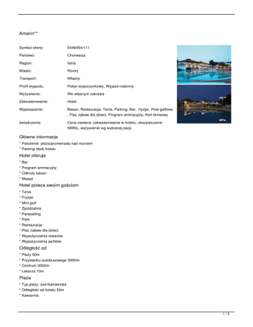 Amarin** Główne intormacje Hotel oferuje Hotel poleca swoim