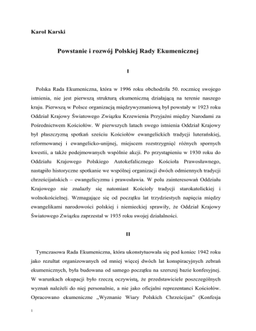 Powstanie i rozwój PRE - Polska Rada Ekumeniczna