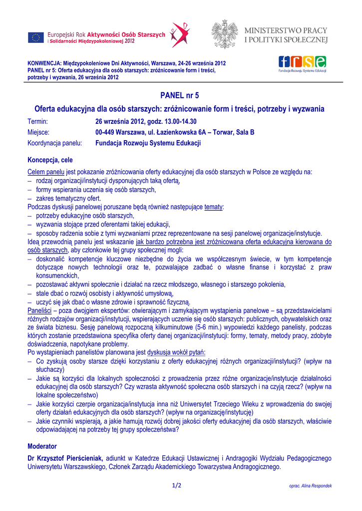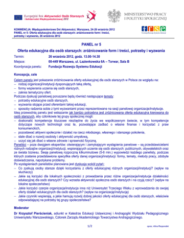 PANEL nr 5 Oferta edukacyjna dla osób starszych