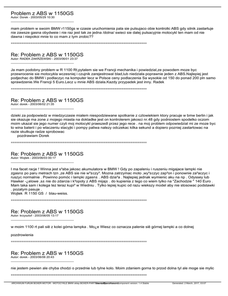 Problem z ABS w 1150GS Re: Problem z ABS w - Boxer