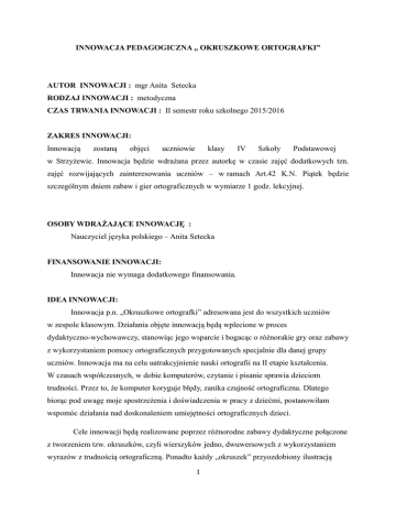 INNOWACJA PEDAGOGICZNA „ OKRUSZKOWE ORTOGRAFKI