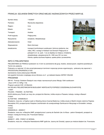 SW-45 - Francja: Szlakiem Świętych oraz miejsc naznaczonych przez Maryję 13dni autobusem