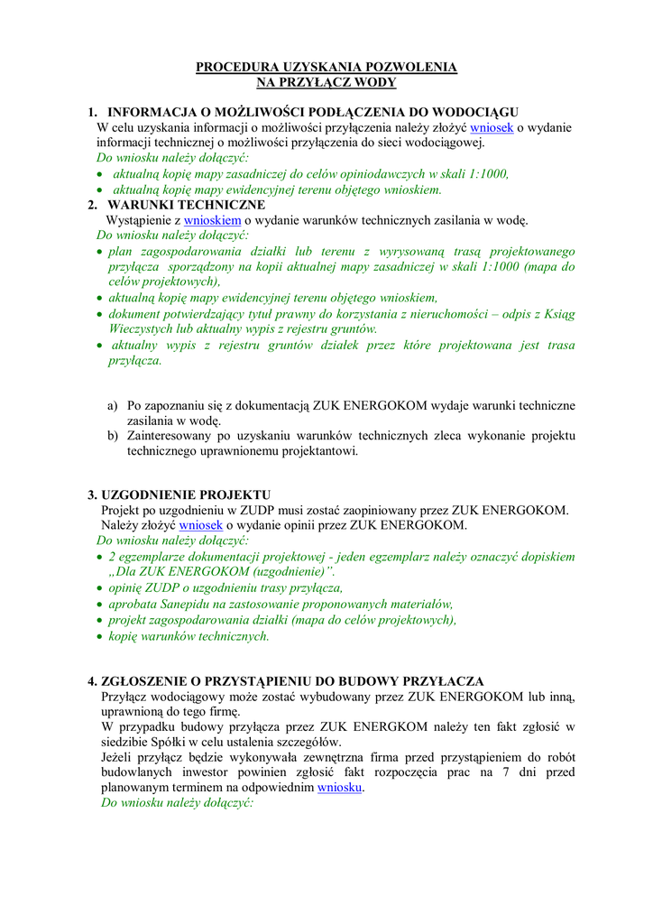 PROCEDURA UZYSKANIA POZWOLENIA NA PRZYŁĄCZ WODY 1