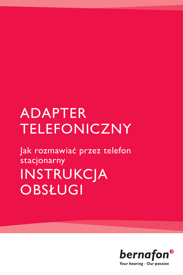 ADAPTER TELEFONICZNY Jak rozmawiać przez telefon s tacjonarny INSTRUKCJA OBSŁUGI INSTRUKCJA OBSŁUGI Wprowadzenie Ten przewodnik opisuje w jaki sposób używać SoundGate do rozmów przez telefon stacjonarny. Adapter telefoniczny zapewnia bezprzewodowe połączenie pomiędzy SoundGate oraz domowym telefonem stacjonarnym podłączonym do linii telefonicznej. Dzięki tym urządzeniom użytkownik aparatów może obsługiwać połączenia przychodzące oraz wychodzące. W pierwszej kolejności należy się upewnić, czy poprawnie zainstalowano adapter telefoniczny. Proces instalacji tego urządzenia opisano w osobnym przewodniku instalacji. Należy pamiętać, że maksymalny zasięg połączenia bezprzewodowego pomiędzy SoundGate oraz adapterem telefonicznym wynosi 10 m. ADAPTER TELEFONICZNY SoundGate - przegląd Przycisk telefoniczny •K rótkie przyciśnięcie: Akceptacja przychodzącego połączenia lub rozłączenie połączenia Blokada odblokowane zablokowane Regulacja głośności • Krótkie przyciśnięcie: zwiększenie/ zmniejszenie głośności Przycisk Bluetooth ® •K rótkie przyciśnięcie: włączenie • D ługie przyciśnięcie: wyłączenie Wskaźnik stanu baterii • Bardzo długie przyciśnięcie: tryb parowania Rozmowy telefoniczna mogą być odbierane w przypadku włączenia blokady! INSTRUKCJA OBSŁUGI Połączenia przychodzące Przed rozmową Zawieś SoundGate na szyi używając w tym celu dostarczonego z urządzeniem naszyjnika. Upewnij się, że funkcja Bluetooth ® w SoundGate jest włączona. Upewnij się, że jesteś w odległości nie większej niż 10 m od adaptera. Akceptacja połączenia przychodzącego Połączenia przychodzące odbierane są poprzez krótkie naciśnięcie przycisku telefonicznego SoundGate. Podczas połączenia obwódka wokół klawisza rozpocznie emisję ciągłego światła. Oznacza to, że sygnał telefoniczny jest transmitowany do aparatów słuchowych. Podczas rozmowy telefonicznej wskaźnik statusu adaptera telefonicznego będzie migotał. Zakończenie połączenia Naciśnij klawisz telefoniczny SoundGate. Połączenie zostanie zakończone. Wskaźnik statusu na adapterze telefonicznym będzie emitował ciągłe światło. Status Status 04.09/BAG/956-80-254-00/subject to change Połączenie przychodzące Twoje aparaty zaczną generować dźwięk dzwonka oraz zielona obwódka przycisku telefonicznego zacznie migotać. Połączenia wychodzące Inicjowanie połączenia Poprzez krótkie naciśnięcie przycisku telefonicznego SoundGate lub klawisza funkcyjnego adaptera rozpocznij połączenie. W aparatach słuchowych usłyszysz sygnał telefonu. Obwódka wokół klawisza będzie emitowała ciągłe światło. Podnieś słuchawkę telefonu lub naciśnij na telefonie klawisz rozpoczęcia połączenia oraz wprowadź numer telefonu osoby, do której dzwonisz. Po zakończeniu rozmowy odłóż słuchawkę lub naciśnij na telefonie klawisz zakończenia połączenia. Status Podczas rozmowy wskaźnik statusu adaptera będzie migotał. Zakończenie połączenia Naciśnij klawisz telefoniczny SoundGate. Połączenie zostanie zakończone, a obwódka wokół klawisza przestanie emitować światło. Wskaźnik statusu na Status adapterze telefonicznym będzie emitował ciągłe światło. Upewnij się, czy słuchawka telefonu jest poprawnie odłożona! ADAPTER TELEFONICZNY UWAGA: SoundGate zaprojektowano w ten sposób, że Twój głos zostanie odpowiednio wzmocniony, aby Twój rozmówca dokładnie słyszał co mówisz. Pamiętaj, aby mówić wyraźnie na naturalnym poziomie głośności. Jeśli Twój rozmówca Cię nie rozumie, mów bezpośrednio do mikrofonu zainstalowanego w SoundGate.
