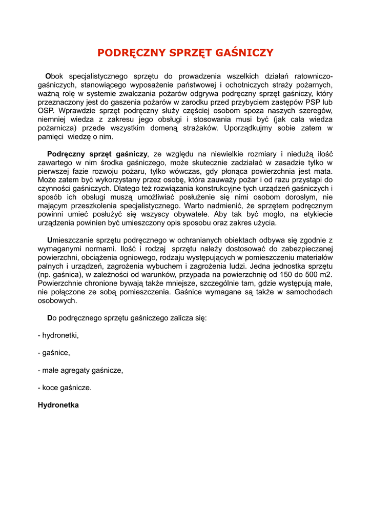 PODRĘCZNY SPRZĘT GAŚNICZY