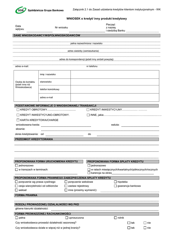 WNIOSEK o kredyt/ inny produkt kredytowy - SGB