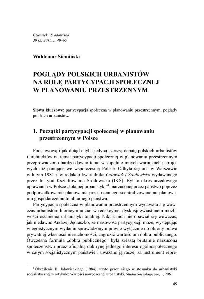 Poglądy polskich urbanistów na rolę partycypacji społecznej w