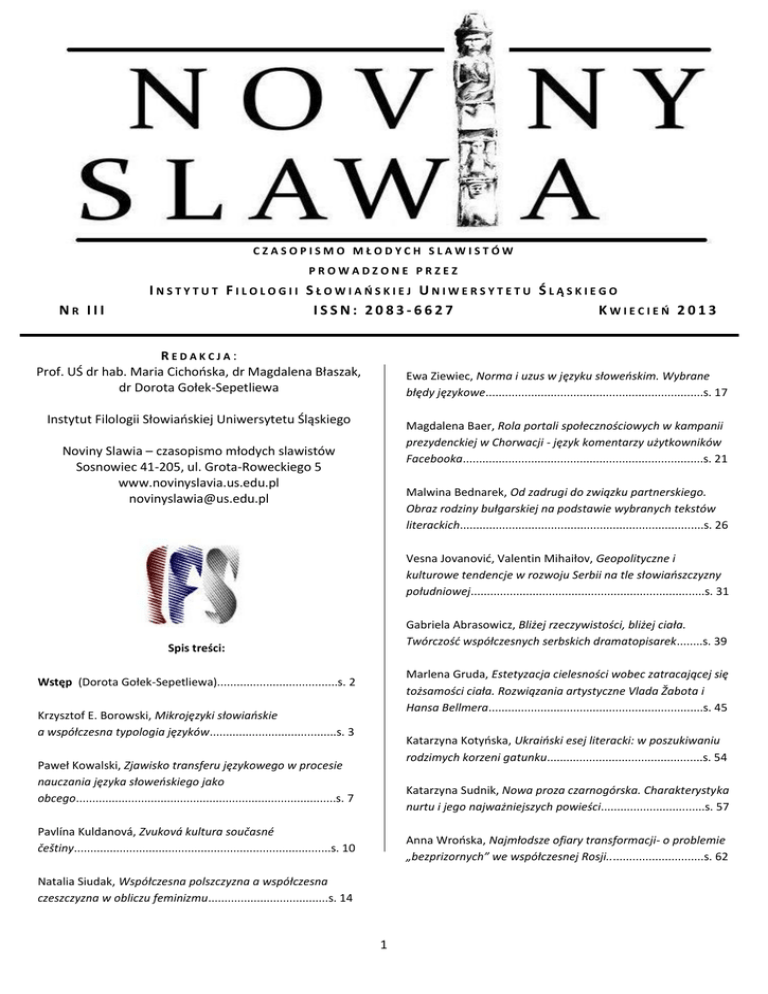 NR III ISSN: 2083-6627 2013 - NOVINY SLAWIA