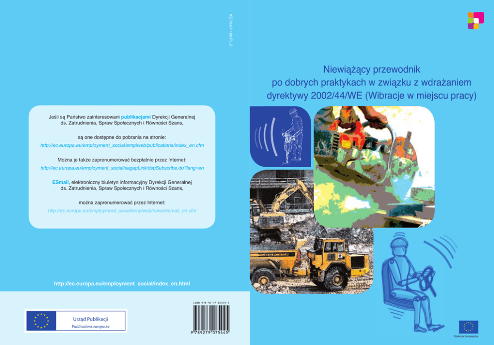 KE-70-07-108-PL-C Niewiążący przewodnik po dobrych praktykach w związku z wdrażaniem dyrektywy 2002/44/WE (Wibracje w miejscu pracy) Jeśli są Państwo zainteresowani publikacjami Dyrekcji Generalnej ds. Zatrudnienia, Spraw Społecznych i Równości Szans, są one dostępne do pobrania na stronie: http://ec.europa.eu/employment_social/emplweb/publications/index_en.cfm Można je także zaprenumerować bezpłatnie przez Internet: http://ec.europa.eu/employment_social/sagapLink/dspSubscribe.do?lang=en ESmail, elektroniczny biuletyn informacyjny Dyrekcji Generalnej ds. Zatrudnienia, Spraw Społecznych i Równości Szans, można zaprenumerować przez Internet: http://ec.europa.eu/employment_social/emplweb/news/esmail_en.cfm http://ec.europa.eu/employment_social/index_en.html ISBN 978-92-79-07544-5 Komisja Europejska Jak otrzymać publikacje UE? Płatne publikacje Urzędu Publikacji są dostępne w EU Bookshop (http:// bookshop.europa.eu/). Ze strony tej można złożyć zamówienie na publikacje w dowolnym biurze sprzedaży. Pełną listę sprzedawców naszych publikacji na całym świecie można uzyskać, wysyłając faks pod numer (352) 2929 42758. Niewiążący przewodnik po dobrych praktykach mający na celu wdrożenie dyrektywy 2002/44/WE w sprawie minimalnych wymagań w zakresie ochrony zdrowia i bezpieczeństwa dotyczących narażenia pracowników na ryzyko spowodowane czynnikami fizycznymi (wibracjami) Komisja Europejska Dyrekcja Generalna ds. Zatrudnienia, Spraw Społecznych i Równości Szans Jednostka F.4 Tekst ukończono w sierpniu 2007 r. Komisja Europejska, ani żadna osoba działająca w imieniu Komisji, nie odpowiada za sposób wykorzystania informacji zawartych w niniejszej publikacji. . © 1: Health & Safety Laboratory - UK © 2: FreeFoto.com © 3: Freephoto1.com © 4: Health & Safety Laboratory - UK Europe Direct to serwis, który pomoże Państwu znaleźć odpowiedź na pytania dotyczące Unii Europejskiej. Oto numer bezpłatny*: 00 800 6 7 8 9 10 11 * Niektórzy operatorzy telefonii komórkowej nie udostępniają połączeń z numerami 00 800 lub pobierają za nie opłaty. Bardzo wiele informacji na temat Unii Europejskiej znajduje się w Internecie. Dostęp można uzyskać przez serwer Europa (http://europa.eu). © Wspólnoty Europejskie, 2009 Powielanie materiałów jest dozwolone, pod warunkiem że zostanie podane ich źródło. Dane katalogowe znajdują się na końcu niniejszej publikacji. Luksemburg: Urząd Oficjalnych Publikacji Wspólnot Europejskich, 2009. ISBN 978-92-79-07544-5 Printed in Luxembourg Druk na papierze białym bezchlorowym PRZEDMOWA Tworzenie miejsc pracy wymieniane jest od dawna wśród priorytetów Unii Europejskiej. Cel ten , który należy do najważniejszych zagadnień w kontekście poprawy jakości pracy, oficjalnie zatwierdziła Rada Europejska w Lizbonie w marcu 2000 r. Nieodłączną konsekwencją podjętych zobowiązań do traktowania zdrowia i bezpieczeństwa pracowników w miejscu pracy jako istotnego elementu ogólnej koncepcji dobrego samopoczucia w pracy jest podjęcie środków prawodawczych. W tym kontekście Komisja Europejska opracowuje szeroki wachlarz instrumentów, składających się na zintegrowaną kulturę zapobiegania zagrożeniom. Jednym z tych instrumentów jest niniejszy przewodnik po dobrych praktykach. Dyrektywa 2002/44/WE podaje „dopuszczalne wartości ekspozycji” oraz „wartości działania”. Określa ona również obowiązki pracodawców w odniesieniu do ustalania i oceny ryzyka, przedstawia środki, jakie należy podjąć w celu ograniczenia lub zapobieżenia narażeniu, a także wyszczególnia sposoby informowania i szkolenia pracowników. Każdy pracodawca, który zamierza wykonać pracę mogącą powodować zagrożenia wynikające z narażenia na drgania, jest zobowiązany do wdrożenia szeregu środków ochronnych przed rozpoczęciem i w trakcie wykonywania pracy. Dyrektywa nakłada również na państwa członkowskie UE wymóg wdrożenia odpowiedniego systemu monitorowania stanu zdrowia pracowników narażonych na ryzyko związane z drganiami. Oszacowanie i ocena zagrożeń wynikających z narażenia na drgania, jak również wdrażanie środków ochronnych, mogą być skomplikowane. Niniejszy niewiążący „przewodnik po dobrych praktykach” ułatwi dokonanie oceny ryzyka wynikającego z narażenia na drgania przekazywane na kończyny górne, określenie środków kontroli ukierunkowanych na wyeliminowanie lub ograniczenie narażenia, a także wprowadzenie systemów zapobiegania rozwojowi i postępowi urazów. Przedmowa Dyrektywa 2002/44/WE Parlamentu Europejskiego i Rady w sprawie narażenia pracowników na ryzyko spowodowane czynnikami fizycznymi (drganiami) ma na celu wprowadzenie na szczeblu Wspólnoty minimalnych wymagań w zakresie ochrony pracowników w sytuacji, gdy są oni narażeni w czasie wykonywanej pracy na zagrożenia związane z drganiami. 3 S pis treści Część 1 Przewodnik po dobrych praktykach w zakresie drgań mechanicznych działających przez kończyny górne..................................................................................................... 7 Rozdział 1:Wprowadzenie......................................................................................................... 11 Rozdział 2: Ocena zagrożenia.................................................................................................. 15 Rozdział 3: Eliminowanie lub ograniczenie narażenia.................................................... 23 Rozdział 4: Kontrola warunków zdrowotnych................................................................... 31 Załączniki A - H ........................................................................................................................... 33 Skorowidz....................................................................................................................................... 53 Część 2 Przewodnik po dobrych praktyka