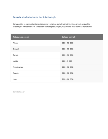Cennik studia tatuażu dark