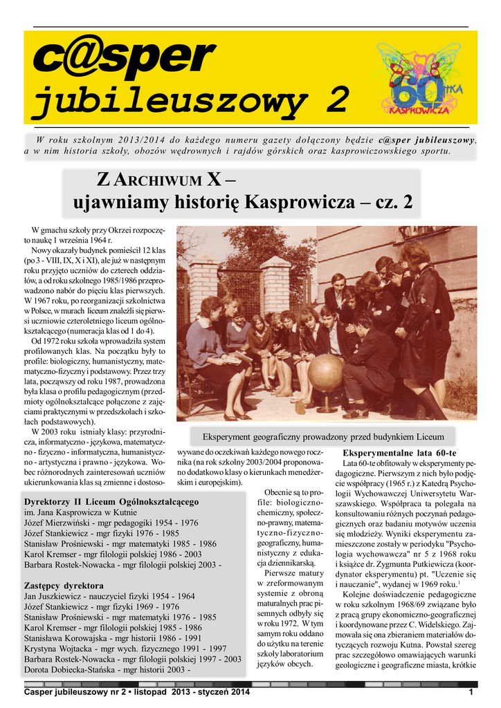 W roku szkolnym 20 13/2014 do każdego numeru gazety d ołączony będzie c@sper jubileus zowy,