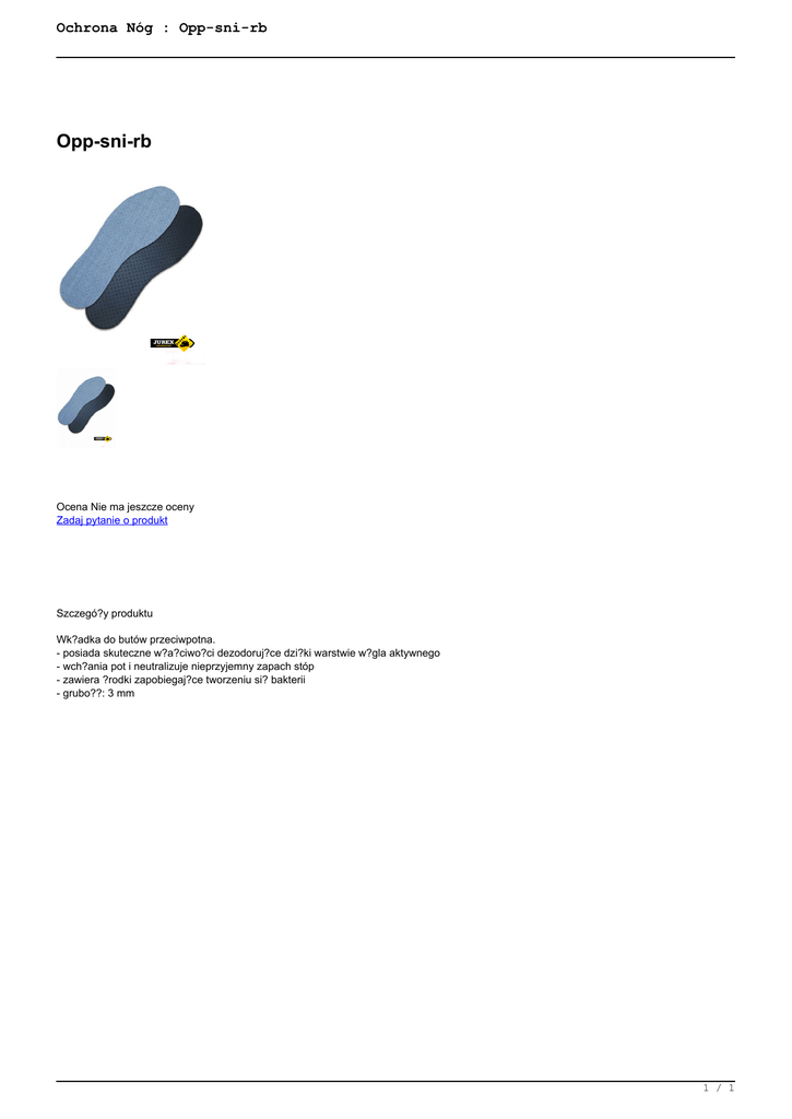 Ochrona Nóg : Opp-sni-rb Opp-sni-rb Ocena Nie ma jeszcze oceny Zadaj pytanie o produkt Szczegó?y produktu Wk?adka do butów przeciwpotna. - posiada skuteczne w?a?ciwo?ci dezodoruj?ce dzi?ki warstwie w?gla aktywnego - wch?ania pot i neutralizuje nieprzyjemny zapach stóp - zawiera ?rodki zapobiegaj?ce tworzeniu si? bakterii - grubo??: 3 mm 1 / 1 Powered by TCPDF (www.tcpdf.org)
