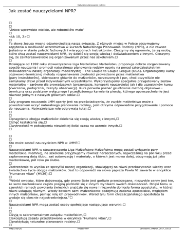 objawowo-termicznej, jest równiez własne świadectwo życia małżonków-instruktorów NPR. Wartości te są