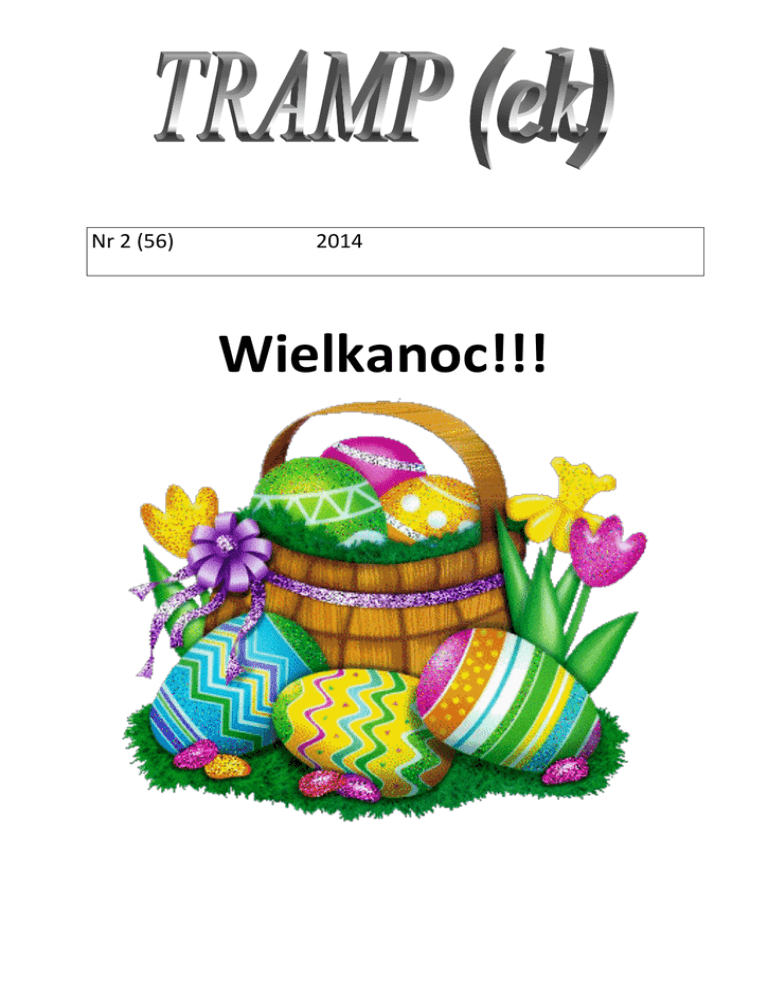Nr 2 (56) 2014 Wielkanoc!!! "Wiedzę możemy zdobywad od innych, ale mądrości musimy nauczyd się sami." Aktualności szkolne Redaktorzy Trampka pragną złożyd najserdeczniejsze życzenie z okazji imienin nauczycielom, którzy obchodzili je lub będą obchodzid w najbliższym czasie, Paniom: Edycie Ostanek, Krystynie Łazowskiej, Dorocie Kowalczyk, Beacie Tarach i Grażynie Rajkowskiej. Wielkanoc !!! W tym roku Wielkanoc będziemy obchodzili 20 kwietnia. Jest to najstarsze i najważniejsze święto chrześcijaoskie upamiętniające Zmartwychwstanie Jezusa Chrystusa. Pewnie nie możecie doczekad się corocznego zamieszania przed świętami: malowania pisanek, święcenia pokarmów i ulubionego „śmigusa-dyngusa”?. Jest to czas zadumy nad Męką Paoską, ale również czas radości ze Zmartwychwstania. Z tej okazji życzymy Wam ciepłych i spokojnych świąt. Redakcja Trampka Turystyka GORCE 2014 Kolonie letnie organizowane corocznie przez Uczniowski Klub Sportowy "777" cieszą się zawsze dużą popularnością. W tym roku jednak zainteresowanie zaskoczyło nawet organizatorów. W obecnej chwili pozostało naprawdę tylko kilka wolnych miejsc. Czy to dobre opinie o koloniach, cena (niska jak na zawartośd programu i miejsce), czy inne względy zadecydowały, że już prawie nie ma miejsc? Przypomnijmy, że na początku wakacji jedziemy jak zwykle w góry na 2 tygodnie. Tam chodzimy po wielu pasmach górskich, zwiedzamy mniejsze i większe miejscowości, kąpiemy się i bawimy na koloniach. Całośd kosztuje 1280 zł. Jeżeli ktoś jeszcze chciałby "załapad się" na ostatnie miejsca, to proszę zgłosid się do p. Litwioskiego. Zapraszamy! Ze szkolnych aren sportowych Sport Ostatni okres był bardzo udany dla naszych sportowców. ale po kolei... Jako pierwsi rywalizację rozpoczęli nasi siatkarze. Na mecze eliminacyjne pojechali do Wiśniewa już w lutym. Tam za przeciwników mieli drużynę gospodarzy i reprezentację Kotunia. W pierwszym meczu nie dali szans chłopakom z Wiśniewa, a w drugim wysoko wygrali z Kotuniem. W tym momencie mogliśmy się cieszyd z awansu do finałowych rozgrywek. 26 marca nasza drużyna z nadziejami wyjechała do Mordów. Spodziewaliśmy się dobrego występu. I tak się stało! W półfinale pokonaliśmy Krzesk 2 do 0 i spokojnie czekaliśmy na finał. Tu los zesłał nam silną drużynę ze Skórca. Z tą szkołą mamy porachunki od dawna. Raz my jesteśmy górą, raz oni. W tym roku nie było jednak mocnych na naszych chłopców. Pokonali oni Skórzec 2 do 0 i zostali Mistrzami Powiatu . Gratulacje. Po chłopakach przyszedł czas na dziewczyny. Nasze siatkarki w tym roku liczyły na sukces. Turniej eliminacyjny odbył się 17 lutego w Kotuniu. Rywalki postanowiły maksymalnie utrudnid życie naszym dziewczynom i stawiły im opór. Nasza drużyna po ciężkich bojach pokonała jednak koleżanki z Kotunia i Igao w takim samym stosunku 2 do 1. Finał tych rozgrywek odbył się w Domanicach. Tam dziewczęta przegrały jednak mecz półfinałowy z gospodarzami i musiały zadowolid się grą w "małym finale", czyli o III miejsce. W meczu tym pokonały drużynę ze Skórca 2 do 0. To i tak duży sukces, bo dziewczęta mają jeszcze rok gry w gimnazjum przed sobą. Gratulacje.19 marca gościliśmy około 20 drużyn piłkarek nożnych. Nasze dziewczęta wystąpiły, bo gospodarzom wypada wystawid drużynę, kiedy zawody odbywają się na naszym terenie. Okazało się, że w naszych dziewczętach drzemie niezły potencjał piłkarski. W grupie eliminacyjnej zremisowały 0 do 0 z Radomyślą i 1 do 1 z Wodyniami. Wygrany mecz z Bojmiem 2 do 0 dał im awans do pierwszej czwórki turnieju. Tu jednak umiejętności piłkarskie oraz warunki fizyczne rywalek okazały się lepsze. W półfinale przegraliśmy z Olszanką, a w meczu o III miejsce z Seroczynem. Medale były o krok, jednak IV miejsce też należy uznad za sukces. Gratulacje. Wywiad Przeprowadziliśmy wywiad z panem Grzegorzem Rostkowskim. Przeczytajcie i zobaczcie z czym kojarzą mu się słowa rozpoczynające się na pierwsze litery alfabetu: A - imię mojej córki -Asia B - Kamil Bednarek - raegge C - Czarny - producent muzyczny D - Andrzej Dombrowski - piosenkarz E - Envee - muzyk i DJ F - Stanisław Fialkowski - pianista G - moje imię H - Haem - DJ I - IGS - muzyk J - Joanna imię mojej córki w poważniejszym wydaniu K - Tomasz Kamioski - gitarzysta L - Tomasz Lach - wokalista M - Magiera - muzyk N - Marcin Nowak - muzyk O - O.S.T.R - raper P - Piotr Piasecki - muzyk R - Rostkowski S - Andrzej Sikorowski - gitarzysta T - Teka - raper U - nie wiem V - Violetta Villas X - nie wiem Y - yeti Z - Andrzej Zielioski Od razu widad, że pan Grzesio jest muzykiem ,,pełną gębą,, :D Różności Pierwszy Dzieo Wiosny Dnia 21 marca, w naszej szkole obchodziliśmy Dzieo Wiosny. Z tej okazji uczniowie Gimnazjum przygotowali różne konkursy i zabawy, takie jak: konkurs na najpiękniejszą Marzannę, scenka „Za co lubimy wiosnę?”, karaoke, układanie haseł związanych z wiosną , krzyżówki. Najlepsza okazała się klasa 1B, drugie miejsce zajęła klasa 3A, a trzecie miejsce wywalczyła klasa 3B. Serdeczne gratulacje dla zwycięzców! Informacje o testach Testy gimnazjalne odbyły się 23,24 i 25 kwietnia 2014r. częśd humanistyczna – 23 kwietnia 2014 r.( środa ) - historia, wiedza o społeczeostwie - język polski częśd matematyczno-przyrodnicza – 24 kwietnia 2014 r. (czwartek) -przedmioty przyrodnicze -matematyka język obcy (angielski lub rosyjski) – 25 kwietnia 2014 r. (piątek) - na poziomie podstawowym - na poziomie rozszerzonym Olimpiada franciszkaoska Całkiem niedawno trójka uczniów naszego Gimnazjum: 1. Maciej Parapura, klasa III b 2. Karolina Rymuza, klasa II c 3. Izabela Wakuła, klasa II b godnie reprezentowała naszą szkołę w etapie diecezjalnym Ogólnopolskiej Franciszkaoskiej Olimpiady Wiedzy o św. Maksymilianie. Częśd pisemną przeprowadzono w Zespole Szkół Pona