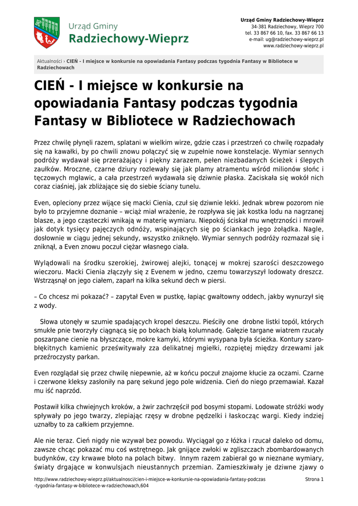 CIEŃ - I miejsce w konkursie na opowiadania Fantasy podczas