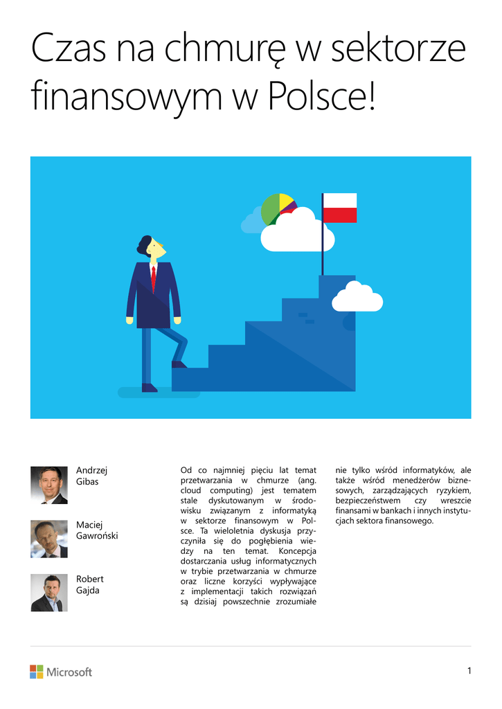 Czas na chmurę w sektorze finansowym w Polsce! Andrzej Gibas Maciej Gawroński Robert Gajda Od co najmniej pięciu lat temat przetwarzania w chmurze (ang. cloud computing) jest tematem stale dyskutowanym w środowisku związanym z informatyką w sektorze finansowym w Polsce. Ta wieloletnia dyskusja przyczyniła się do pogłębienia wiedzy na ten temat. Koncepcja dostarczania usług informatycznych w trybie przetwarzania w chmurze oraz liczne korzyści wypływające z implementacji takich rozwiązań są dzisiaj powszechnie zrozumiałe nie tylko wśród informatyków, ale także wśród menedżerów biznesowych, zarządzających ryzykiem, bezpieczeństwem czy wreszcie finansami w bankach i innych instytucjach sektora finansowego. 1 Awersja do ryzyka i wynikające z niej opóźnienia Pomimo znacznego wzrostu świadomości oraz gwałtownego rozwoju technologii chmurowych we wspomnianym okresie, sektor finansowy w Polsce wciąż z wielką ostrożnością podchodzi do rzeczywistej implementacji modelu chmurowego. Z jednej strony jest to zrozumiałe, gdyż akceptacja chmury w pierwszej kolejności następuje wśród konsumentów, następnie wśród małych i średnich firm, a dopiero na końcu wśród największych przedsiębiorstw. Z drugiej jednak strony sektor finansowy w Polsce prezentuje pewne opóźnienie w tym obszarze zarówno w porównaniu do innych branż w Polsce, jak i do podobnych organizacji w Europie czy Ameryce Północnej. Wydaje się, że przyczyn należy szukać w dwóch źródłach. Pierwsze źródło to generalnie niższa akceptacja koncepcji przetwarzania w chmurze przez polskie przedsiębiorstwa na tle innych krajów. Przykładowo, wg. Eurostat jedynie 6% polskich przedsiębiorstw korzystało w 2014 r. z takiego modelu, co na tle średniej europejskiej – 18% - plasuje Polskę na końcu całej stawki z wielkimi zaległościami do lidera – Finlandii gdzie chmura jest używana przez ponad połowę przedsiębiorstw. Być może przyczyną wstrzemięźliwości polskich przedsiębiorstw we wdrażaniu rozwiązań chmurowych jest paradoksalnie dobra, zwłaszcza na tle innych krajów, sytuacja polskiej gospodarki. Być może nieźle radzące sobie polskie przedsiębiorstwa wciąż nie odczuwają potrzeby wdrożenia nowych, innowacyjnych i oszczędnych rozwiązań, które jednak w pierwszym okresie wymagają wysiłku wdrożenia, reorganizacji procesów czy wręcz zmianę korporacyjnej kultury. W przypadku instytucji sektora finansowego na ogólną wstrzemięźliwość polskich przedsiębiorstw nakłada się dodatkowa trudność – chętnie wspominana przez przedstawicieli tej branży – związana z obowiązkiem zgodności z wymagającymi regulacjami tego rynku. Figure 1: Use of cloud computing services, 2014 (% of enterprises) - Source: Eurostat (isoc_cicce_use) Idą trudne czasy czas na zmiany Bez wątpienia sektor finansowy jest poddany bardziej rygorystycznym wymogom regulacji niż inne branże w Polsce. Wydaje się jednak, że w przypadku niektórych instytucji z tego sektora wymóg zgodności z obowiązującymi przepisami był dotychczas wykorzystywany, jako swoiste usprawiedliwienie braku podejmowania wysiłku w przygotowaniu wdrożenia rozwiązań chmurowych. W wielu miejscach można usłyszeć takie argumenty: „popatrzymy jak się uda innym”, „nie chcemy być pionierami”, „nie dostaniemy zgody od działu bezpieczeństwa” itp. Rok 2015 i lata kolejne będą trudnym okresem dla sektora bankowego w Polsce. Banki między innymi będą musiały zmierzyć się z następującymi wyzwaniami: • drastyczne podwyższenie składki na Bankowy Fundusz Gwarancyjny – konsekwencja upadku SKOKów • spadająca marża odsetkowa • kryzys „frankowy” – powszechne oczekiwanie zarówno ze strony konsumentów, jak i sporej grupy polityków, aby banki finansowo partycypowały w kwestii rozwiązania problemu spłaty kredytów hipotecznych udzielonych we frankach szwajcarskich z dużym prawdopodobieństwem odbije się negatywnie na wyniku sektora • stała presja na koszty, związana ze strategią poprawy wskaźnika C/I także w kontekście przygotowania się banków do kolejnej fali konsolidacji rynku • • • wzrost wewnętrznej konkurencyjności na rynku bankowym w Polsce w tym związana z kurczeniem się rezerw prostych – znaczny wzrost „ubankowienia” polskiego społeczeństwa; dalsze pozyskiwanie klientów jest związane z ich przejęciem od konkurentów pojawienie się konkurencji w postaci ofert usług finansowych z instytucji z innych branż wzrost wymagań ze strony klientów – w tym związanych ze zmianami kultury i metod komunikacji w konsekwencji powszechności użycia technologii internetowych. Wydaje się, że czas „strategii na przeczekanie” mija – dotychczasowe metody poszukiwania oszczędności związane np. z optymalizacją, konsolidacją i wirtualizacją zasobów informatycznych nie przyniosą dalszych znaczących efektów. Wydaje się także, że nadchodzi czas na bardziej zdecydowane ruchy i wdrożenia kolejnych innowacyjnych rozwiązań. Przetwarzanie w chmurze może być właśnie takim znaczącym krokiem, umożliwiającym dalsze znaczne redukcje kosztów przy jednoczesnej poprawie efektywności procesów biznesowych instytucji finansowej, poprawie wydajności zatrudnianych pracowników, poprawie oferowanego doświadczenia klienta, poprawie wskaźników finansowych banków w tym C/I i ROE. Oczekiwane korzyści wynikające z implementacji rozwiązań chmurowych, zwłaszcza w kontekście wyzwań rynkowych, przyczynią się do podjęcia trudu wdrożeń spełniających wszystkie wymogi 2 obowiązujących przepisów. Nagrodą za ten trud będzie umocnienie pozycji rynkowej instytucji i zbudowanie przewag konkurencyjnych na nadchodzące lata w stosunku do tych instytucji finansowych, które tego trudu nie podejmą. Główne wyzwania regulacyjne Mając na uwadze możliwość wykorzystania usług opartych o przetwarzanie w chmurze mierz