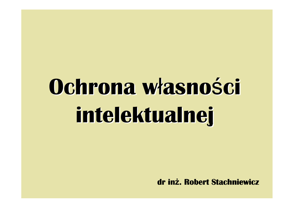 Ochrona własności intelektualnej dr inż. in . Robert Stachniewicz DEFINICJE Własność intelektualna – wszystkie rodzaje praw (osobistych i majatkowych) dotyczących wytworów ludzkiego umysłu tzn. działalności intelektualnej w dziedzinie przemysłowej, naukowej, literackiej, artystycznej. Własność przemysłowa – zaliczamy do niej wynalazki, wzory użytkowe, wzory przemysłowe, technologie, sekrety przemysłowe i handlowe, znaki towarowe i usługowe, nazwy handlowe, oznaczenia i nazwy pochodzenia (geograficzne) ZNAKI TOWAROWE R przykłady z życia codziennego: R TM – (TradeMark) oznacza znak towarowy, – (ServiceMark) oznacza znak usługowy, ® – (Registered) oznacza, że znak towarowy, przy którym widnieje dany symbol jest zarejestrowany, © – (Copyright) oznacza zastrzeżenie praw autorskich do znaku towarowego. SM Używanie powyższych znaków nie jest obowiązkowe ale zalecane. Ochrona własności intelektualnej oznacza ochronę praw w zakresie: praw autorskich i pokrewnych, praw do wzoru przemysłowego lub wzoru użytkowego, znaków towarowych, oznaczeń geograficznych, patentów, topografii układów scalonych, farmaceutyków, środków ochrony roślin, odmian roślin. LITERATURA PRZEDMIOTU Książki: Michniewicz G.: Ochrona własności intelektualnej. Wydawnictwo: C.H. Beck, 2010., Nowak T.: Ochrona własności intelektualnej, wybrane zagadnienia. Wydaw. Politechniki Białostockiej, 2008., Sieńczyło-Chlabicz, J.(red.): Prawo własności intelektualnej. LexisNexis Polska, 2009. Załucki M. (red.): Prawo własności intelektualnej : repetytorium. "Difin", 2008. Szewc A.: Szczególne aspekty ochrony własności intelektualnej. Zeszyty Naukowe – Politechnika Opolska. Oficyna Wydawnicza Politechniki Opolskiej, 2009. Nowińska E.: Polskie prawo własności intelektualnej : prawo autorskie, prawo wynalazcze, prawo znaków towarowych. Twigger, 1998. LITERATURA PRZEDMIOTU Ustawy Źródła krajowe: 1. Ustawa z dnia 4 lutego 1994 r. o prawie autorskim i prawach pokrewnych (Dz.U. 1994 Nr 24 poz.83 z późniejszymi zmianami). 2. Ustawa z dnia 30 czerwca 2000 r. Prawo własności przemysłowej (Dz.U. 2001 Nr 49 poz.508 z późniejszymi zmianami). 3. Ustawa z dnia 16 kwietnia 1993 r. o zwalczaniu nieuczciwej konkurencji (Dz.U. nr 47 poz. 211). 4. Ustawa z dnia 11 kwietnia 2001 r. o rzecznikach patentowych (Dz.U. 2001 nr 49 poz. 509). 5. Ustawa z dnia 16 luty 2007 r. o ochronie konkurencji i konsumentów (Dz.U. 2007 nr 50 poz. 331). 6. Ustawa z dnia 23 sierpnia 2007 r. o przeciwdziałaniu nieuczciwym praktykom rynkowym (Dz.U. 2007 nr 171 poz. 1206 ). 7. Ustawa z dnia 27 lipca 2001 r. o ochronie baz danych (Dz.U. 2001 nr 128 poz.1402 z późniejszymi zmianami). 8. Ustawa z dnia 27 lipca 2005 r. Prawo o szkolnictwie wyższym (Dz.U. 2005 nr 164 poz. 1365) w kwestiach dotyczących akademickich inkubatorów przedsiębiorczości, centrów transferu technologii (art. 86) oraz pierwszeństwa do opublikowania pracy dyplomowej studenta (art. 239). LITERATURA PRZEDMIOTU Źródła międzynarodowe: 1. Konwencja Paryska o ochronie własności przemysłowej z dnia 20 marca 1883r. 2. Konwencja Berneńska o ochronie dzieł literackich i artystycznych z dnia 9 wrzesnia 1886r. oraz obowiązujący obecnie Akt Paryski z dnia 24 lipca 1971r. 3. Konwencja o ustanowieniu Światowej Organizacji Własności Intelektualnej (WIPO) – Sztokholm, z dnia 14 lipca 1967r. 4. Inne konwencje i traktaty oraz porozumienia m.in..Porozumienie w sprawie Handlowych Aspektów Praw Własności Intelektualnej (TRIPS) – Marrakesz z dnia 15 kwietnia 1994r. wraz z protokołem zmieniającym (Genewa, 6 grudnia 2005r.). 5. We wspólnocie UE kilkadziesiąt Rozporządzeń i Dyrektyw dot. Ochrony praw autorskich i praw pokrewnych, wynagrodzeń z tytułu ich odsprzedaży, egzekwowania praw własności intelektualnej, nieuczciwych praktyk handlowych i zbliżenia ustawodawstw państw członkowskich odnoszących Sie do znaków towarowych. HISTORIA Starożytność: Rzym - poeta Mercjalis określa działalność Fidentinusa Plagiat – czyn polegający na przywłaszczeniu sobie cudzego dzieła. od plagiarus – słowo używane w antycznym Rzymie do określenia handlarza ludźmi. Plagium – narzucenie stanu niewoli (porównanie przypisania sobie autorstwa cudzego dzieła do zniewolenia osoby, która będąc niewolnikiem została wyzwolona, jednakże ktoś bezprawnie wpędził ją w stan niewoli (porównanie użyte przez Marcjalisa). Horacy Podział wartości przypadających twórcy dzieła na: materialne - wyrażone w pieniądzu, niematerialne – wyrażone w sławie. Znaczenie i wielkość dzieła wyrażała się nie w treści a rodzaju materiału, z którego powstało dzieło. Justynian Wielki (Bizancjum 527-565 n.e.) – utwór przypada nie jego twórcy a właścicielowi materiału, na którym powstał. Prawo chroniło właściciela materiału a nie jego twórcę „świstek papieru silniejszej (…) doznawał ochrony niż najwznioślejsza kreacja duszy ludzkiej” W czasach antycznych pojawiły się pierwowzory znaków towarowych gdyż przepływ towarów powodował anonimowość jego twórcy. Aby to zmienić rzemieślnicy umieszczali określone znaki na swoich produktach (budowle do przedmiotów codziennego użytku). Były one jednak traktowane jako znaki własności (funkcja znaku autorskiego i znaku własności w jednym), które podlegały ochronie cywilnej i karnej. Oznakowania te stosowane były na terenach Egiptu, Babilonu, Chin, Grecji i Imperium Rzymskiego. Np. Znaki używane przez okulistów → gwarancja jakości i kontroli wprowadzanych specyfików. Podsumowując: okres starożytności nie wykształcił pojęcia dzieła w dzisiejszym rozumieniu prawa autorskiego i nie chronił uprawnień twórcy. Średniowiecze: W porównaniu z antykiem epoka ta jest zatrzymaniem rozwoju praw, które przysługiwały twórcom dzieł (V-XV w. regres praw jednostki). Większość średniowiecznych twórców dzieł jest nieznana co 