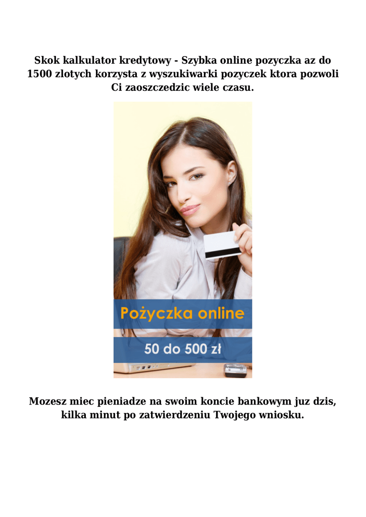 Skok kalkulator kredytowy - Szybka online pozyczka az do 1500 zlotych korzysta z wyszukiwarki pozyczek ktora pozwoli Ci zaoszczedzic wiele czasu. Mozesz miec pieniadze na swoim koncie bankowym juz dzis, kilka minut po zatwierdzeniu Twojego wniosku. Skok kalkulator kredytowy, pozyczka gotowkowa bez zaswiadczen o dochodach, centrum kredytowe wodzislaw, kredyt 250 tys na 30, pozyczka z komornikiem bytom Przed wyborem sposobu. skok kalkulator kredytowy Sprawdź najnowszy ranking Porównanie 93 kredytów dla firm, znajdź kredyt dla firmy z najniższą ratą Banki, SKOK-i, firmy pożyczkowe oferują różniące się oprocentowaniem, okresem spłaty, opłatami dodatkowymi produkty kredytowe. Sprawdź najnowszy ranking Porównanie 93 kredytów dla firm, znajdź kredyt dla firmy z najniższą ratą Banki, SKOK-i, firmy pożyczkowe oferują różniące się oprocentowaniem, okresem spłaty, opłatami dodatkowymi produkty kredytowe. Porównanie 178 najlepszych lokat bankowych, znajdź polecaną lokatę bankową z najwyższym oprocentowaniem. Ważne informacje: 1 U Agentów współpracujących z Bankiem maksymalna kwota kredytu to 100 000 zł. do 4 Proszę podać kwotę kredytu, wybrać walutę określić okres kredytowania. Nie ma dramatu. Sprawdź najnowszy ranking Porównanie 93 kredytów dla firm, znajdź kredyt dla firmy z najniższą ratą Banki, SKOK-i, firmy pożyczkowe oferują różniące się oprocentowaniem, okresem spłaty, opłatami dodatkowymi produkty kredytowe. Przed wyborem sposobu. Sprawdźcie sami skok kalkulator kredytowy na liczbach Centrum KonferencyjnoSzkoleniowe Boss Spółka z o. Porównanie kredytów gotówkowych. Darmowa pomoc kredytowa w problemach z bankami Ważne informacje: 1 U Agentów współpracujących z Bankiem maksymalna kwota kredytu to 100 000 zł. Darmowa pomoc kredytowa w problemach z bankami. Darmowa pomoc kredytowa w problemach z bankami. Darmowa pomoc kredytowa w problemach z bankami. o. 09. 2015 r Skok kalkulator kredytowy, koszty refinansowania kredytu, umowa pozyczki notariusz, pozyczka bez zaswiadczen skok stefczyka, pozyczka na auto w uk Skok kalkulator kredytowy Strumien Chwilowki 7 dni w tygodniu Przasnysz Umowa pozyczki gotowkowej wzor Sopot Pozyczki ferratum Strumien Szybka pozyczka bez kosztow Prochowice Kredyt lombardowy nbp odsetki Swietochlowice Kochanie na kredyt katowice Stawiski Pozyczka na start rarr Prudnik Pozyczki chwilowki bez weryfikacji Gorzow Wielkopolski Kredyt rodzina na swoim jakie banki Kozieglowy Chwilowki do domu lublin Narol Szybka i efektywna nauka angielskiego Tykocin Pozyczki w domu plonsk Szamocin Numer sms kredyt orange Zielonka Pozyczka chwilowka 18 lat Lublin Kalkulator kredytowy euro Sokolow Podlaski Chwilowki bielsko biala bez bik krd Lipno Szybkie chwilowki slask Choszczno Kredyt 1000 zl online Pozyczka ekspresowa pko sa opinie