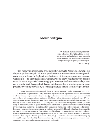 Słowo wstępne W naukach humanistycznych nie istnieje właściwie dyscyplina, która ze swojego punktu widzenia i przy zastosowaniu swoich metod nie byłaby w stanie wnieść czegoś nowego do praw podstawowych. Robert Alexy1 Ten niezwykle inspirujący cytat autorstwa Roberta Alexy’ego odwołuje się do praw podstawowych. W moim przekonaniu z powodzeniem można go odnieść do problematyki będącej przedmiotem niniejszego opracowania, a nawet szerzej − do innych dziedzin wiedzy. Pojęcie praw podstawowych zostało ukształtowane w prawie konstytucyjnym, a następnie skutecznie zaadaptowane w prawie Unii Europejskiej. Prawo międzynarodowe, choć do pojęcia praw podstawowych się odwołuje2, to jednak preferuje własną terminologię i konseR. Alexy, Teoria praw podstawowych, tłum. B. Kwiatkowska i J. Zajadło, Warszawa 2010, s. 33. Najpierw w preambule Karty Narodów Zjednoczonych wyrażone zostało przekonanie o zdecydowaniu przywrócenia wiary w „[…] podstawowe prawa człowieka, w godność i wartość człowieka, w równouprawnienie mężczyzn i kobiet, w równość narodów dużych i małych”. Następnie w nawiązaniu do postanowień Karty NZ, w piątym akapicie preambuły Powszechnej Deklaracji Praw Człowieka czytamy: „[…] zważywszy, że Ludy Narodów Zjednoczonych potwierdziły w Karcie swą wiarę w podstawowe prawa człowieka, w godność i wartość osoby ludzkiej i w równe prawa mężczyzn i kobiet oraz dały wyraz swej stanowczej woli popierania postępu społecznego i polepszenia warunków życia w większej wolności”. Deklaracja odwołała się wprawdzie do pojęcia praw podstawowych, ale możliwe, że tylko dlatego, iż tym pojęciem posłużyła się karta. Już w samym tytule deklaracji wyeksponowano, że jest to Deklaracja Praw Człowieka, a ostatecznie w szóstym akapicie deklaracja stanowi o tym, że „[…] Państwa Członkowskie zobowiązały się we współpracy z Narodami Zjednoczonymi do zapewnienia powszechnego poszanowania i przestrzegania praw człowieka oraz podstawowych wolności”. 1 2 14 Słowo wstępne kwentnie posługuje się pojęciem praw człowieka. Wydaje się jednak, że mniejsze znaczenie ma to, czy mówimy o prawach podstawowych, czy o prawach człowieka, gdyż w istocie mówimy o tym samym. Istotniejsza jest jednak treść cytatu. Robert Alexy wyraża w nim przekonanie, że prawa człowieka są obszarem na tyle szerokim, że stają się źródłem zróżnicowanej naukowej refleksji, w tym również takiej, która stara się przedstawić problematykę praw człowieka w nowym ujęciu. W pełni się zgadzam z tym stanowiskiem naukowego autorytetu. Prawa człowieka mają interdyscyplinarny charakter, dlatego humanistyczne spojrzenie na człowieka i jego prawa może być dokonywane w ujęciu różnych nauk społecznych. Również w naukach prawnych problematyka praw człowieka może być pokazana w sposób charakterystyczny dla danej dyscypliny. Ta sama materia będzie różnie przedstawiana przez nauki historyczne, dogmatyczne (w tym przede wszystkim przez prawo konstytucyjne i prawo międzynarodowe publiczne) i przez doktryny polityczno-prawne. Jeszcze inne będzie ujęcie teoretyczne, któremu jest poświęcone niniejsze opracowanie. Tytuł niniejszej pracy, ze względu na zawarte w nim novum terminologiczne, wywołuje uzasadnione oczekiwanie jego eksplikacji. „Operacjonalizacja ochrony praw człowieka w porządku Europejskiej Konwencji Praw Człowieka (studium teoretycznoprawne)” zakłada udzielenie odpowiedzi na pytanie, co to znaczy operacjonalizować ochronę praw człowieka. Stwierdzenie, że jest to złożony proces, u podstaw którego leży ukształtowanie się określonej idei, zaledwie otwiera pole do szerszych rozważań nad opracowaniem koncepcji unormowania praw człowieka, a potem ich legislacyjnego ujęcia w aktach normatywnych, ukształtowania określonego systemu instytucji, w ramach którego prawa człowieka będą gwarantowane oraz objęte procesem interpretacji i stosowania, aż do ich internacjonalizacji wywołującej międzysystemowe interakcje w prawnej przestrzeni międzynarodowej. Wracając do pytania o rozumienie pojęcia operacjonalizacji ochrony praw człowieka, chciałoby się wręcz odpowiedzieć, że to zależy, w jakim kręgu kulturowym proces ten będzie realizowany. Dlatego odpowiedź ta staje się zdecydowanie łatwiejsza, gdy zwiążemy pojęcie operacjonalizacji ochrony z porządkiem Europejskiej Konwencji Praw Człowieka. To kieruje rozważania do europejskiego kręgu cywilizacyjnego. Bardzo często podkreśla się, że idea praw człowieka narodziła się w tym kręgu i że został on wyznaczony przez „etykę judeochrześcijańską, greckie poczucie piękna oraz rzymską doktrynę prawa”3. Prawa człowieka są bez wątpienia wynikiem bogatej refleksji filozoficznej, która była podejmowana przez wieki. Odwoływanie się do tradycji judeochrześcijańskiej, odrodzeniowej i oświeceniowej wskazuje, że „idea praw człowieka nie była dziełem konkretK. Warchałowski, Prawo do wolności myśli sumienia i religii w Europejskiej Konwencji Praw Człowieka i Podstawowych Wolności, Lublin 2004, s. 6. 3 Słowo wstępne 15 nego filozofa czy danej epoki, tylko zdaje się być rezultatem dokonującego się przez wieki namysłu nad ludzką moralnością i wolnością”4. Ten wielowiekowy dyskurs − pełen sporów i polemik, które zresztą trwają do dzisiaj − znalazł swoje zwieńczenie w prawie pozytywnym. Zasady wolności, równości i przyrodzonej godności, wraz z przekonaniem o niezbywalności praw wszystkich ludzi, stawały się stopniowo po drugiej wojnie światowej fundamentem aktów normatywnych państw europejskich i najważniejszych międzynarodowych konwencji praw człowieka. Współcześnie zasady te w europejskiej przestrzeni prawnej uzyskały walor aksjomatu. Stały się podstawą współczesnej filozofii ochrony praw człowieka, filarem konstytucji państw demokratyc