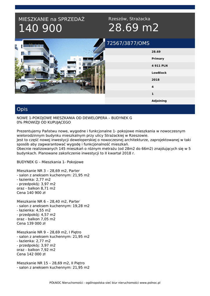 140 900 28.69 m2 - PÓŁNOC Nieruchomości