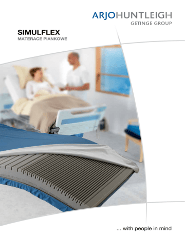 SIMULFLEX MATERACE PIANKOWE ... with people in mind SYSTEMY SIMULFLEX Materace Simulflex™ zostały opracowane, aby zapewnić całodobowe rozwiązania dla pacjentów i ich opiekunów. Obejmują one materace piankowe redystrybuujące nacisk kładzione bezpośrednio na ramę łóżka, materace kładzione na materace bazowe oraz poduszki do siedzenia. Są one wykonane z wysokiej jakości poliuretanowej pianki i są niedrogą alternatywą dla kosztownych systemów w opiece klinicznej. Materace Simulflex są dostępne w różnych rozmiarach. Dodatkowo, materac kładziony na materac bazowy jest wyposażony w zabezpieczające pasy narożne. Pakiet całodobowej opieki — opcjonalna poduszka do siedzenia Materac kładziony na materac bazowy jest również dostępny i łatwy w zakładaniu Komfort i bezpieczeństwo Odpowiednie do szpitali, hospicjów, domów opieki dla osób chorych i starszych oraz do ośrodków opieki. Produkty Simulflex są zgodne z zaleceniami dotyczącymi odkażania i przepisami dotyczącymi ognioodporności. Bezpieczeństwo i wygoda dla pacjentów i opiekunów Materac Simuflex został zaprojektowany i przetestowany przez jednostkę badawczo-rozwojową firmy ArjoHuntleigh, aby zapewnić optymalną i niezawodną wydajność za dobrą cenę. Cechy pokrowca • Dwukierunkowo rozciągliwy • Przepuszcza wilgoć • Wodoodporny • Przeciwbakteryjny, bakteriostatyczny i grzybostatyczny • Łatwy w czyszczeniu i utrzymaniu • Ukryty zamek • Wyraźnie oznaczone pokrowce z instrukcją TurnTable™ i instrukcjami prania Ukryty zamek Strefy inspirowane anatomią Jest podzielony na trzy strefy poziomo ciętej pianki, która zapewnia wspaniałą redystrybucję nacisku. Większa kontrola zakażeń. Superwygodna strefa głowy i pięt Większa liczba niewielkich nacięć na każdym końcu materaca zapewnia dodatkowy komfort w strefie głowy i pięt. Wskazówki TurnTable — wszystkie materace Simuflex są wyposażone w instrukcje dot. obracania. Świetne wyprofilowanie Świetne wyprofilowanie w pozycji z uniesionymi kolanami i stopami w dole lub leżącej. Simulflex został przetestowany przez pacjenta o wadze 86 kg: 84% powierzchni < 30 mmHg Wskaźnik powierzchni nacisku Wskazuje zdolność powierzchni do rozprowadzania nacisku na powierzchni kontaktowej. Im wyższy wskaźnik nacisku, tym lepsza wydajność. SPECYFIKACJA PRODUKTU 4-kierunkowy materac kładziony na ramę łóżka WymiaryNumer katalogowy wys x sz x gł. MR Standard 1980 x 860 x 150 mm 120SX198/086 MR Community 1900 x 920 x 150 mm 120SX190/092 MR Contoura 1820 x 780 x 150 mm 120SX182/078 Limit wagi pacjenta: 120 kg Gwarancja: 2 lata na piankę i pokrowiec Materace kładzione na materac bazowy OL Standard 1980 x 860 x 85 mm SO198/086 OL Community 1900 x 920 x 85 mm SO190/092 Siedzisko 430 x 430 x 70 mm SS043/043 Limit wagi pacjenta: 90 kg Gwarancja: 6 miesięcy na piankę i pokrowiec Poduszka do siedzenia Gwarancja: 6 miesięcy Ognioodporność materacy kładzionych bezpośrednio na ramę łóżka: System MR zgodny z normą BS EN 597-1: 1995, BS EN 597-2: 1995 i BS 6807: 1996, część 2, Źródła zapłonu 0,1 i 5 Materace kładzione na materac bazowy są zgodne z normą BS EN 597-1: 1995, BS EN 597-2: 1995 i BS 6807: 1996, część 2, Źródła zapłonu 0,1 i 5 w pozycji górnej Ognioodporność pokrowca: Całkowicie obejmujące materac pokrowce ognioodporne wg BS 7175 W urządzeniach i produktach dostarczanych przez ArjoHuntleigh można używać wyłącznie części zaprojektowanych przez ArjoHuntleigh, zgodnie z ich przeznaczeniem. Stosujemy zasadę ciągłego doskonalenia, dlatego zastrzegamy sobie prawo do modyfikacji projektów i danych technicznych produktu bez uprzedzenia. ® i ™ są znakami towarowymi należącymi do grupy firm ArjoHuntleigh. © ArjoHuntleigh, 2010 www.ArjoHuntleigh.com ArjoHuntleigh AB Hans Michelsensgatan 10 211 20 Malmö Sweden Telefon: +46 (0) 10 335 45 00 GRUPA GETINGE jest czołowym na świecie dostawcą produktów i systemów poprawiających jakość i efektywność ekonomiczną kosztów w służbie zdrowia i w branży life sciences. Prowadzimy działalność pod trzema markami: ArjoHuntleigh, GETINGE i MAQUET. Firma ArjoHuntleigh działa w zakresie rozwiązań wspomagających sprawność pacjenta oraz leczenia ran. GETINGE dostarcza rozwiązania służące do kontroli zakażeń w ochronie zdrowia oraz do zapobiegania zanieczyszczeniom w branży life sciences. MAQUET specjalizuje się w rozwiązaniach, terapiach i produktach dla chirurgii i intensywnej opieki. ArjoHuntleigh Polska Sp. z o.o. ul. Ks. Piotra Wawrzyniaka 2 62-052 Komorniki Polska Tel. + 48 61 664 54 11 Fax + 48 61 662 15 90 E-mail: [email protected] Wydrukowano w Republice Czeskiej • Point • 01.TS.25.1.PL.1.AHG • Październik 2010 ArjoHuntleigh jest oddziałem spółki Arjo Ltd. Med. AB.