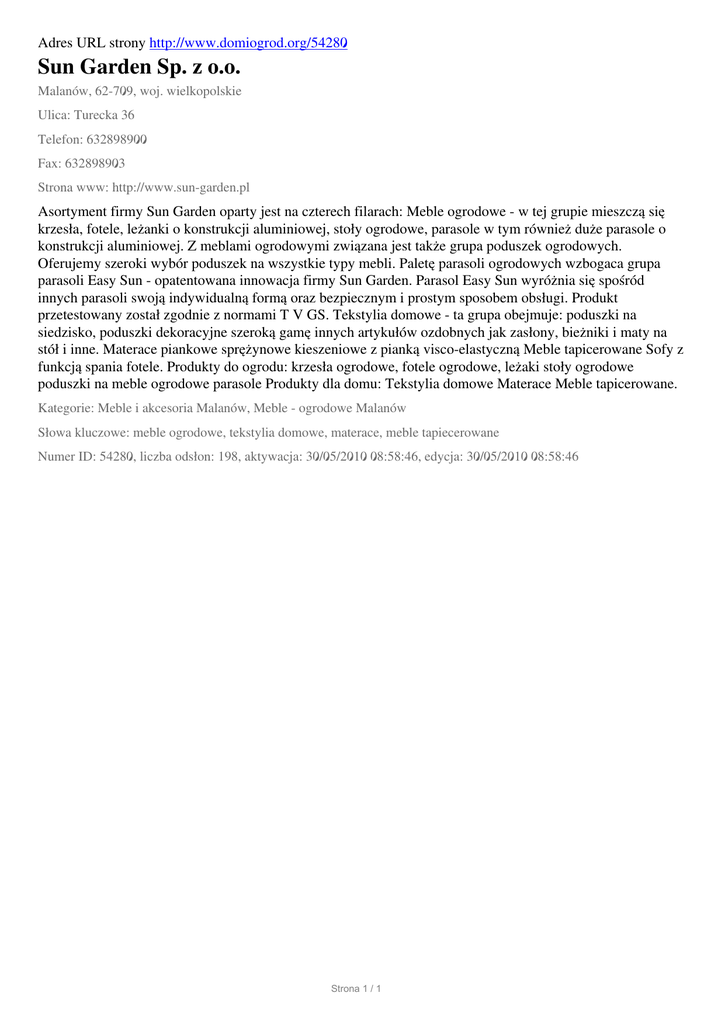 Sun Garden Sp. z o.o., Malanow, Turecka 36