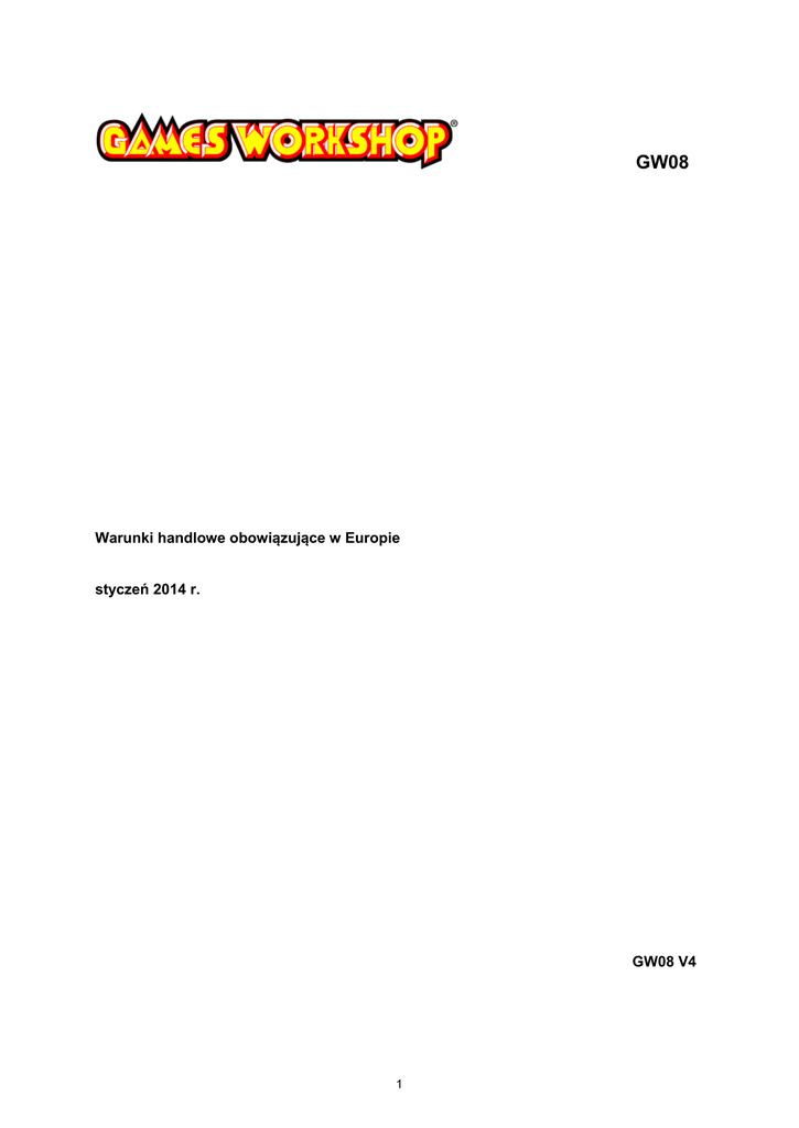 Warunki handlowe obowiązujące w Europie styczeń 2014 r. GW08 V4