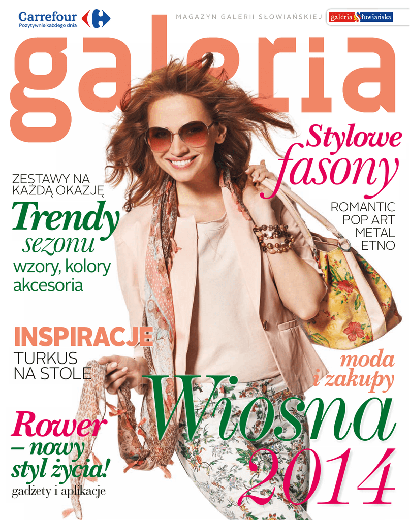 MAGAZYN GALERII SŁOWIAŃSKIEJ Stylowe fasony ZESTAWY NA KAŻDĄ OKAZJĘ Trendy ROMANTIC POP ART METAL ETNO sezonu wzory, kolory akcesoria INSPIRACJE TURKUS NA STOLE Rower – nowy styl życia! gadżety i aplikacje moda i zakupy Wiosna 2014 Czy wiecie, że… Każda z Nas marzy o pięknych, zdrowych i lśniących włosach - aby osiągnąć wymarzoną fryzurę, podstawą jest odpowiednio dobrana pielęgnacja. Każda linia Dove jest wyjątkowa, każda z nich posiada specjalnie dobrane składniki, które pielęgnują i odżywiają Twoje włosy, takie jak: Colour RevitaliserTM , Naturalne, lekkie olejki Nutri-Oils oraz Keratin Repair Actives. • Odżywki odżywiają tylko do następnego mycia • Maski regenerują zniszczenia na powierzchni włosa i odżywiają na dłużej • Szamponu nie nakładamy bezpośrednio na skórę głowy • Nie rozczesujemy mokrych włosów, wtedy łatwiej ulegają zniszczeniom • Włosy suszymy najlepiej bez gorącego powietrza • Przy temperaturze powyżej 100°C dochodzi do powstawania pęcherzyków pary wodnej -„bubble hair” co sprzyja łamliwości włosa Intensywna odbudowa włosów już w 2 tygodnie * Nowa udoskonalona linia Dove do włosów zniszczonych Dzięki specjalnej formule szamponów i odżywek Dove, zawarte w nich małe cząsteczki składników aktywnych mogą wnikać do wnętrza włókna włosa i odbudowywać je od środka. Oddziałują z uszkodzonymi włóknami białka – keratyny w rdzeniu włosa przywracając im ich podstawowe właściwości i funkcje lub nawilżają i odżywiają włosy uzupełniając braki lipidów. Dzięki temu możecie cieszyć się pięknymi, mocnymi i gładkimi włosami. Co jeszcze możecie zrobić, aby odpowiednio zadbać o swoje włosy? Poznajcie tajniki odpowiedniej pielęgnacji włosów z Dove Hair Therapy! *Regularne użycie ekspresowej maseczki regenerującej Dove w porównaniu do szamponu bez składników kondynujących W spis treści wiosna 2014 W Wiosna to czas zmian. Wraz z pierwszymi promieniami słońca, w każdym z nas budzi się chęć do zwiększonej aktywności i realizacji nowych planów. Zmieniamy nasze otoczenie, remontujemy mieszkania, odświeżamy i uzupełniamy garderobę albo kupujemy rower. Zatem i my zapraszamy Was do lektury odmienionego magazynu Galeria. Każdy znajdzie w nim propozycje najnowszych kolekcji, porady dotyczące mody, urody i stylu życia. Zachęcamy zatem do podjęcia wiosennych wyzwań: zamieńcie zimowe kurtki na kwiatowe sukienki, zacznijcie jeździć rowerem do pracy! Cieszcie się wiosną! Galeria Słowiańska 4 6 8 10 12 20 22 AKTUALNOŚCI 24 TRENDY | moda z wybiegów i naszych sklepów 26 TRENDY | czyli, jakie tej wiosny obowiązują fasony, wzory i kolory MODA DLA PANÓW | co wybrać: krawat czy muszkę? A także stylowe zestawy i akcesoria 28 31 MODA | w naszej sesji Marysia prezentuje pięć najważniejszych trendów sezonu 32 TRENDY | kwiaty, glamour, paski... 33 MODA | propozycje ubrań i dodatków dla dzieci 34 STYL ŻYCIA | jazda na rowerze to jest to! URODA | jakie fryzury będziemy nosić w tym sezonie?Jak zrobić perfekcyjny makijaż oczu? DOM | stół w kolorze turkusu i pomysłowe aranżacje wielkanocne DOM | estetyczne detale na wiosnę odmienią twoje wnętrze ZOO | mały pies w domu – jak o niego dbać i co mu kupić? HOROSKOP INFORMACJE | usługi i mapa Galerii Wydawca: Carrefour Polska Sp. z o.o. ul. Targowa 72; 03-734 Warszawa | Produkcja: Valkea Media S.A., ul. Elbląska 15/17; 01-747 Warszawa, www.cp-valkea.com | Zespół: Monika Adamus – koordynator projektu, Wiesława Górska, Iwona Gontarska, Ewa Maciejewska, Janusz Kieś | Reklama: Jolanta Zbieg, [email protected], tel.509 711 030 | Projekt graficzny: Krzysztof Pietrasik | DTP: Marta Żylska, Łukasz Bałdyga, Wojciech Jastrzębski Fotoedycja: Jan Malinowski, Weronika Gołąb | Dyrektor Valkea Custom Publishing: Tomasz Opiela, [email protected] Galeria Słowiańska nie odpowiada za treść reklam oraz błędy powstałe w przygotowaniu i druku. Informacje zamieszczone w niniejszym wydawnictwie mają charakter reklamowy i nie stanowią oferty w rozumieniu przepisów prawa handlowego. Podane ceny mogą ulec zmianie. Zdjęcia w numerze: Image(s)Copyright©2014. Used under license from Shutterstock.com. 3 galeria słowiańska News i n f o a k t u a l n o ś c i Klasyka i egzotyka Orsay Deichmann z fasonem fot. Deichmann Lekkie materiały, swoboda, odrobina ekscentryzmu oraz proste stylizacje łączące komfort z modnym wyglądem – tak prezentuje się wiosenno-letnia kolekcja Deichmanna. Jednym z kluczowych trendów sezonu pozostają sneakersy, np. w jaskrawych barwach, z ekscentrycznymi nadrukami czy graficznymi wzorami. Obok nich pojawiają się również sandały i inne fasony w kolorze śnieżnobiałym, kremowym, kości słoniowej, a także beżu i szarości. Popularne zdobienia to: brokat, nity, sprzączki oraz fantazyjne skórzane tasiemki i ażurowe wzory. fot. Orsay fot. Orsay Kobiece stroje zdobione delikatnymi koronkami, haftami oraz kwiecistymi nadrukami to jeden z wiodących trendów w wiosennej kolekcji Orsay. Ale nie jedyny. Naturalna stylistyka wzbogacona o wielkomiejskie akcenty i bogate wzornictwo – od marynistycznych po etniczne – tworzy różnorodną ofertę, w której coś oryginalnego dla siebie odnajdzie każda z pań. Na uwagę zasługują lekkie i wygodne materiały, podkreślające kobiece walory, ale także bogata kolorystyka – od subtelnych pasteli przez intensywne ciepłe barwy aż po wyraziste kontrasty bieli z czernią. W stylu Mohito Połączenie zwierzęcych printów z odcieniami niebieskiego to jeden z wiosennych trendów Mohito, zwany ForgetMe-Not, który może być hitem tego sezonu. Ale w nowej kolekcji Mohito znajdziemy też inne propozycje, np. kobieca klasyka zestawiona z nowoczesnymi, sportowymi fasonami. Cała kolekcja zachęca do eksperymentowania z modą na co dzień. Elegancką koszulę możesz połączyć ze spodniami w panterkowy print lub s