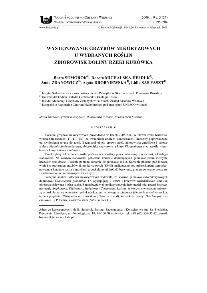 występowanie grzybów mikoryzowych u wybranych roślin