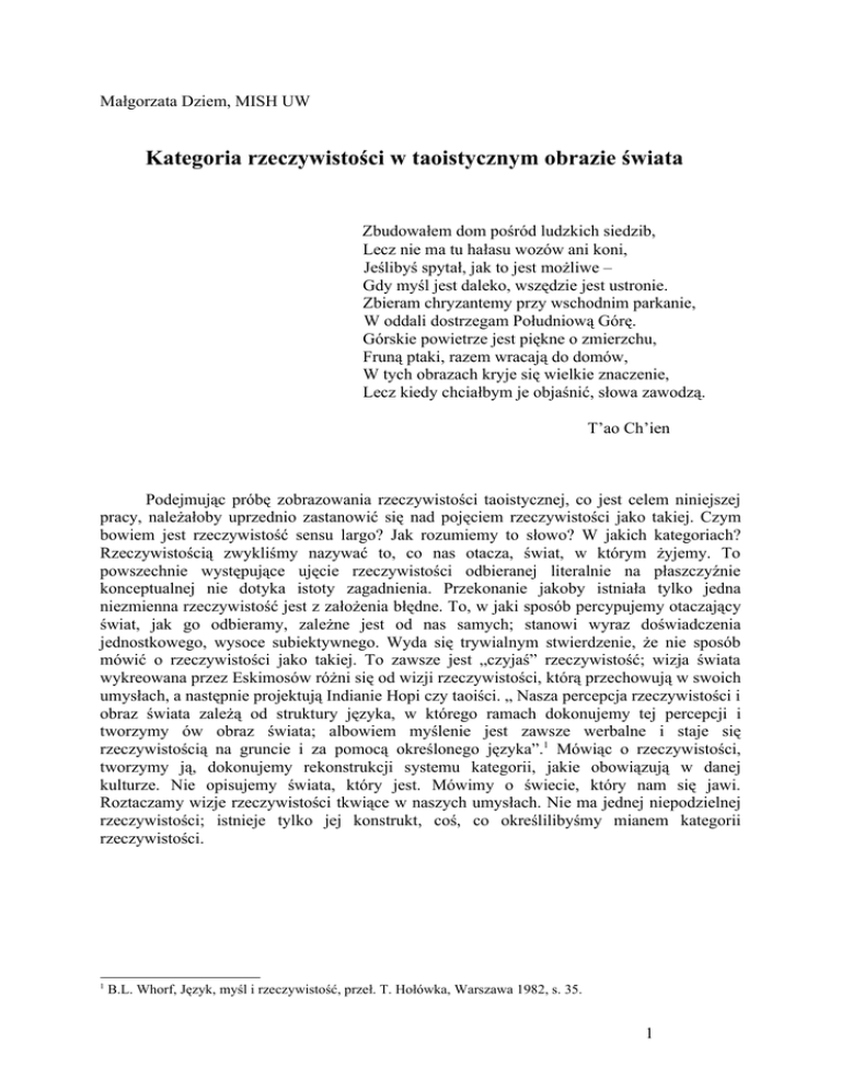 kategorii rzeczywistości i w sposób jasny będzie starała się przedstawić obraz taoistycznego
