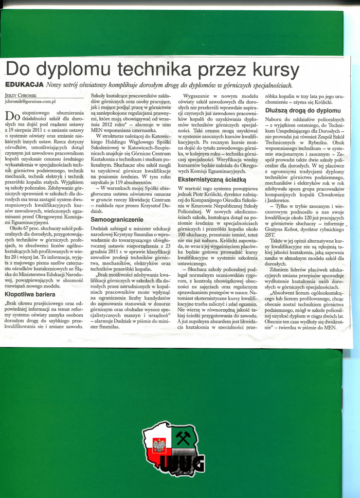 Trybuna Górnicza "Do dyplomu górnika przez kursy"