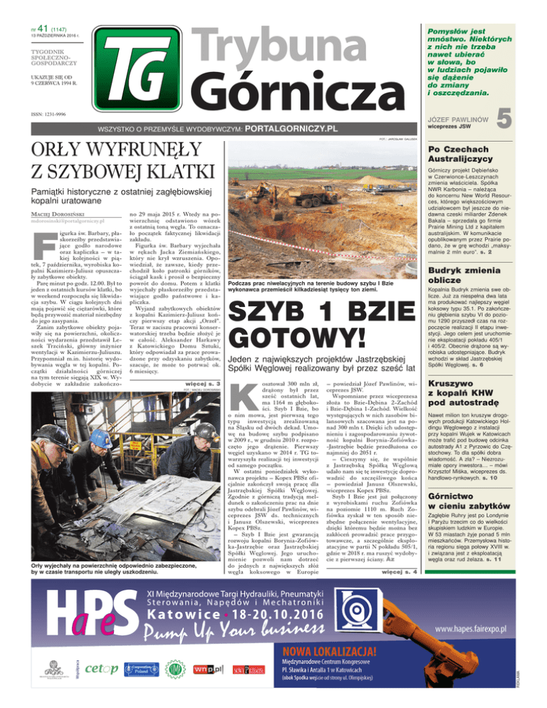 41 (1147) Pomysłów jest mnóstwo. Niektórych z nich nie trzeba nawet ubierać w słowa, bo w ludziach pojawiło się dążenie do zmiany i oszczędzania. 13 PAŹDZIERNIKA 2016 r. TYGODNIK SPOŁECZNOGOSPODARCZY ukazuje się OD 9 CzerwCa 1994 r. ISSN: 1231-9996 JÓZEF PAWLINÓW WSZYSTKO O PRZEMYŚLE WYDOBYWCZYM: wiceprezes JSW PORTALGORNICZY.PL Orły wyfrunęły z szybOwej klatki fOT.: JAROSłAW GALuSEK Po Czechach Australijczycy Górniczy projekt Dębieńsko w Czerwionce-Leszczynach zmienia właściciela. Spółka NWR Karbonia – należąca do koncernu New World Resources, którego większościowym udziałowcem był jeszcze do niedawna czeski miliarder Zdenek Bakala – sprzedała go firmie Prairie Mining Ltd z kapitałem australijskim. W komunikacie opublikowanym przez Prairie podano, że w grę wchodzi „maksymalnie 2 mln euro”. s. 2 Pamiątki historyczne z ostatniej zagłębiowskiej kopalni uratowane MACIEj DOROSIńSKI [email protected] igurka św. barbary, płaskorzeźby przedstawiające godło narodowe oraz kapliczka – w takiej kolejności w piątek, 7 października, wyrobiska kopalni kazimierz-juliusz opuszczały zabytkowe obiekty. Parę minut po godz. 12.00. był to jeden z ostatnich kursów klatki, bo w weekend rozpoczęła się likwidacja szybu. w ciągu kolejnych dni mają pojawić się ciężarówki, które będą przywozić materiał niezbędny do jego zasypania. zanim zabytkowe obiekty pojawiły się na powierzchni, okoliczności wydarzenia przedstawił leszek trzciński, główny inżynier wentylacji w kazimierzu-juliuszu. Przypomniał m.in. historię wydobywania węgla w tej kopalni. Początki działalności górniczej na tym terenie sięgają XiX w. wydobycie w zakładzie zakończo- F no 29 maja 2015 r. wtedy na powierzchnię odstawiono wózek z ostatnią toną węgla. to oznaczało początek faktycznej likwidacji zakładu. figurka św. barbary wyjechała w rękach jacka ziemiańskiego, który nie krył wzruszenia. Opowiedział, że zawsze, kiedy przechodził koło patronki górników, ściągał kask i prosił o bezpieczny powrót do domu. Potem z klatki wyjechały płaskorzeźby przedstawiające godło państwowe i kapliczka. wyjazd zabytkowych obiektów z kopalni kazimierz-juliusz kończy pierwszy etap akcji „Orzeł”. teraz w zaciszu pracowni konserwatorskiej trzeba będzie złożyć je w całość. aleksander Harkawy z katowickiego Domu sztuki, który odpowiadał za prace prowadzone przy odzyskaniu zabytków, szacuje, że może to potrwać ok. 6 miesięcy. więcej s. 3 fOT.: MACIEJ DOROSIńSKI Orły wyjechały na powierzchnię odpowiednio zabezpieczone, by w czasie transportu nie uległy uszkodzeniu. 5 Podczas prac niwelacyjnych na terenie budowy szybu I Bzie wykonawca przemieścił kilkadziesiąt tysięcy ton ziemi. SzyB 1 Bzie GotoWy! Jeden z największych projektów Jastrzębskiej Spółki Węglowej realizowany był przez sześć lat osztował 300 mln zł, drążony był przez sześć ostatnich lat, ma 1164 m głębokości. szyb i bzie, bo o nim mowa, jest pierwszą tego typu inwestycją zrealizowaną na Śląsku od dwóch dekad. umowę na budowę szybu podpisano w 2009 r., w grudniu 2010 r. rozpoczęto jego drążenie. Pierwszy węgiel uzyskano w 2014 r. tG towarzyszyła realizacji tej inwestycji od samego początku. w ostatni poniedziałek wykonawca projektu – kopex Pbsz oficjalnie zakończył swoją pracę dla jastrzębskiej spółki węglowej. zgodnie z górniczą tradycją meldunek o zakończeniu prac na dnie szybu odebrali józef Pawlinów, wiceprezes jsw ds. technicznych i janusz Olszewski, wiceprezes kopex Pbsz. – szyb i bzie jest gwarancją rozwoju kopalni borynia-zofiówka-jastrzębie oraz jastrzębskiej spółki węglowej. jego uruchomienie pozwoli nam dotrzeć do jednych z największych złóż węgla koksowego w europie K – powiedział józef Pawlinów, wiceprezes jsw. wspomniane przez wiceprezesa złoża to bzie-Dębina 2-zachód i bzie-Dębina 1-zachód. wielkość występujących w nich zasobów bilansowych szacowana jest na ponad 300 mln t. Dzięki ich udostępnieniu i zagospodarowaniu żywotność kopalni borynia-zofiówka-jastrzębie będzie przedłużona co najmniej do 2051 r. – Cieszymy się, że wspólnie z jastrzębską spółką węglową udało nam się tę inwestycję doprowadzić do szczęśliwego końca – powiedział janusz Olszewski, wiceprezes kopex Pbsz. szyb i bzie jest już połączony z wyrobiskami ruchu zofiówka na poziomie 1110 m. ruch zofiówka zyskał w ten sposób niezbędne połączenie wentylacyjne, dzięki któremu będzie można bez zakłóceń prowadzić prace przygotowawcze, a szczególnie eksploatacyjne w partii n pokładu 505/1, gdzie w 2018 r. ma ruszyć wydobycie z pierwszej ściany. Az Budryk zmienia oblicze Kopalnia Budryk zmienia swe oblicze. Już za niespełna dwa lata ma produkować najlepszy węgiel koksowy typu 35.1. Po zakończeniu głębienia szybu VI do poziomu 1290 przyszedł czas na rozpoczęcie realizacji II etapu inwestycji. Jego celem jest uruchomienie eksploatacji pokładu 405/1 i 405/2. Obecnie drążone są wyrobiska udostępniające. Budryk wchodzi w skład Jastrzębskiej Spółki Węglowej. s. 6 Kruszywo z kopalń KHW pod autostradę Nawet milion ton kruszyw drogowych produkcji Katowickiego Holdingu Węglowego z instalacji przy kopalni Wujek w Katowicach może trafić pod budowę odcinka autostrady A1 z Pyrzowic do Częstochowy. To dla spółki dobra wiadomość. A zła? – Niezrozumiałe opory inwestora… – mówi Krzysztof Miśka, wiceprezes ds. handlowo-rynkowych. s. 10 Górnictwo w cieniu zabytków Zagłębie Ruhry jest po Londynie i Paryżu trzecim co do wielkości skupiskiem ludzkim w Europie. W 53 miastach żyje ponad 5 mln mieszkańców. Przemysłowa historia regionu sięga połowy XVIII w. i związana jest z eksploatacją węgla oraz rud żelaza. s. 11 więcej s. 4 REKLAMA nr 2 13 października 2016 | www.portalgorniczy.pl | trybuna górnicza działo się 1 po cz