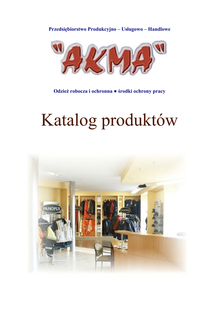 Przedsiębiorstwo Produkcyjno – Usługowo – Handlowe Odzież robocza i ochronna ● środki ochrony pracy Katalog produktów Spis treści 1. Odzież robocza i ochronna.................................................................................................................................. 7 1.1. Ubrania robocze............................................................................................................................................ 7 1.1.1.Ubranie robocze Brixton Classic......................................................................................................... 7 1.1.2.Spodnie ogrodniczki Brixton Classic.................................................................................................. 7 1.1.3.Spodnie do pasa Brixton Classic......................................................................................................... 7 1.1.4.Kombinezon Brixton Classic............................................................................................................... 8 1.1.5.Ubranie robocze Brixton Spark........................................................................................................... 8 1.1.6.Spodnie ogrodniczki Brixton Spark.................................................................................................... 8 1.1.7.Ubranie robocze Brixton Lider............................................................................................................ 9 1.1.8.Spodnie ogrodniczki Brixton Lider..................................................................................................... 9 1.1.9.Spodnie do pasa Brixton Lider........................................................................................................... 9 1.1.10.Kombinezon Brixton Lider................................................................................................................ 10 1.1.11.Ubranie robocze Max Popular........................................................................................................... 10 1.1.12.Spodnie ogrodniczki Max Popular.................................................................................................... 10 1.1.13.Ubranie robocze Krajan - antyelektrostatyczne................................................................................. 11 1.1.14.Spodnie ogrodniczki Krajan - antyelektrostatyczne.......................................................................... 11 1.1.15.Spodnie do pasa Krajan (wzmocnione)............................................................................................. 11 1.1.16.Ubranie robocze typ szwedzki A-003/003....................................................................................... 12 1.1.17.Ubranie robocze Old Master.............................................................................................................. 12 1.1.18.Spodnie ogrodniczki Old Master....................................................................................................... 12 1.1.19.Ubranie robocze Mach2..................................................................................................................... 13 1.1.20.Spodnie ogrodniczki Mach2.............................................................................................................. 13 1.1.21.Spodnie do pasa Mach2..................................................................................................................... 13 1.1.22.Ubranie robocze drelichowe.............................................................................................................. 14 1.1.23.Spodnie robocze drelichowe.............................................................................................................. 14 1.1.24.Kolekcja Brixton White..................................................................................................................... 14 1.2. Ubrania ostrzegawcze (odblaskowe)............................................................................................................ 15 1.2.1.Ubranie robocze Brixton Flash............................................................................................................ 15 1.2.2.Ubranie robocze Krajan odblask......................................................................................................... 15 1.2.3.Ubranie robocze Cezar........................................................................................................................ 15 1.2.4.Spodnie ogrodniczki ostrzegawcze Cezar........................................................................................... 16 1.2.5.Ubranie typ Szwedzki A 007/007 – ostrzegawcze.............................................................................. 16 1.2.6.Spodnie do pasa B007 – ostrzegawcze................................................................................................ 16 1.3. Ubrania ochronne......................................................................................................................................... 17 1.3.1.Ubranie niepalne.................................................................................................................................. 17 1.3.2.Ubranie wełniane dla odlewnika......................................................................................................... 17 1.3.3.Ubranie kwasoochronne...................................................................................................................... 17 1.3.4.Ubranie antyelektrostatyczne.............................................................................................................. 18 1.3.5.Ubranie metalizowane......................................................................................................................... 18 1.4. Fartuchy (robocze)..................................................................................................................................