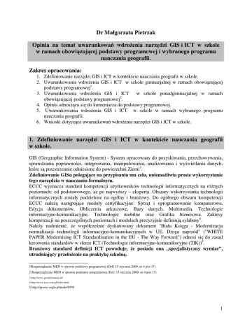1. Zdefiniowanie narzędzi GIS i ICT w kontekście nauczania geografii