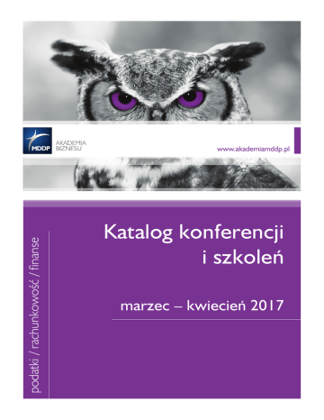 podatki / rachunkowość / finanse www.akademiamddp.pl Katalog konferencji i szkoleń marzec – kwiecień 2017 Szkolenia zamknięte Akademia Biznesu MDDP, wychodząc naprzeciw Państwa potrzebom, proponuje zorganizowanie szkolenia zamkniętego (szkolenia in-company). Szkolenia te cieszą się dużym zainteresowaniem ze względu na ogromną personalizację we wszystkich aspektach. Każde szkolenie wewnętrzne realizujemy poprzez indywidualne podejście oraz dostosowanie programu do specyfiki firmy – tak aby wiedza, którą otrzymają uczestnicy zajęć nie pozostawała tylko jako ślad w materiałach szkoleniowych, ale mogła zostać wykorzystana w praktyce. Przygotowując każde zlecenie dokonujemy szczegółowej analizy i określamy cele, jakie Klient chce osiągnąć, żeby wybrać skuteczne metody pozwalające je zrealizować. Szkolenia zamknięte cechuje m.in.: • wybór tematyki zajęć z jakiej Klient pragnie zorganizować szkolenie; • program szkolenia dostosowany jest do wymogów kontrahenta, opracowywany na podstawie zebranych informacji według jego potrzeb i preferencji; • miejsce szkolenia wskazane jest przez Klienta; • termin zajęć ustalany jest wspólnie z Klientem, tak aby wybrana data nie kolidowała z jego bieżącymi obowiązkami; • grupa pracowników uczestnicząca w szkoleniu zamkniętym otrzymuje od wykładowcy rozwiązania konkretnych problemów działalności jednostki; • materiały szkoleniowe oraz sposób prowadzenia zajęć dostosowane zostają do specyfiki i wymagań Klienta (praktyczne przykłady pochodzą często z jego działalności); • wykładowcy szkoleń wewnętrznych to najlepsi specjaliści w swoich dziedzinach, praktycy, którzy uczestniczą w zmianach polityki rachunkowo-podatkowej, są autorami licznych publikacji, a ich wiedza poparta jest wieloletnim doświadczeniem zawodowym; • warunki organizacyjne każdego projektu ustalane są indywidualnie pomiędzy Stronami. Serdecznie zapraszam do współpracy. Krzysztof Kadlec Partner tel. (22) 208 28 48, fax (22) 208 28 30 kom. 502 279 756 [email protected] www.akademiamddp.pl Wykaz szkoleń i konferencji – Akademia Biznesu MDDP PODATKI XV OGÓLNOPOLSKA KONFERENCJA PODATKOWA Podatki VAT, CIT i CT w 2017 rok – nowelizacja przepisów, aktualne problemy KONFERENCJA Piotr Liss, Radosław Kowalski, Aneta Pożarowska, Radosław Żuk, Marcin Pacyna, Marcin Borkowski 4-6 7-10 Podatki VAT i CIT w 2017 roku – po nowelizacji ustaw podatkowych Aneta Pożarowska, Radosław Żuk, Dawid Milczarek, Samir Kayyali, Marcin Borkowski, dr Paweł Selera, Radosław Kowalski, Marcin Zarzycki, Grzegorz Niebudek, Sebastian Twardoch Wszystko o Krajowej Administracji Skarbowej (KAS) oraz nowych zasadach prowadzenia kontroli – rewolucja 2017: - nowa administracja skarbowa, kontrola celno-skarbowa, procedury Marcin Pacyna, Marcin Borkowski 11-12 Podatek u źródła – rozliczanie transakcji międzynarodowych – regulacje polskie oraz prawo międzynarodowe i umowy o unikaniu podwójnego opodatkowania Marcin Zarzycki 12-13 Jednolity Plik Kontrolny (JPK) – nowe obowiązki od 1 lipca 2016 r. Samir Kayyali, Mateusz Cedro VAT od podstaw w świetle obowiązującej ustawy z uwzględnieniem zmian Marcin Borkowski, Radosław Żuk, Dawid Milczarek 15-17 Dawid Milczarek, Radosław Żuk, Samir Kayyali, Marcin Borkowski 18-20 Faktura VAT w świetle nowelizacji ustawy oraz najnowszego orzecznictwa Dawid Milczarek, Radosław Żuk, Samir Kayyali, Marcin Borkowski 21-22 VAT w obrocie międzynarodowym – konsekwencje zmian w przepisach Dawid Milczarek, Radosław Żuk 22-23 Marcin Zarzycki, Grzegorz Niebudek 24-26 KURS 4-DNIOWY Akademia VAT – po nowelizacji ustawy w 2017 roku Akademia CIT – przepisy po nowelizacji ustawy w 2017 roku KURS 4-DNIOWY 14 Cash pooling jako element zarządzania płynnością w grupie kapitałowej Jarosław Stankiewicz Ceny transferowe 2017 – obowiązujący stan prawny oraz nowe przepisy obowiązujące od dnia 1 stycznia 2017 r. dr Jarosław F.Mika, Marcin Zarzycki 28-29 Ceny transferowe 2017 Marcin Zarzycki, Grzegorz Niebudek 30-31 Działania marketingowe – aspekty podatkowe oraz świadczeń na rzecz pracowników i współpracowników Marcin Zarzycki, Grzegorz Niebudek, Mateusz Cedro 32-33 Zasady rozliczeń z pracownikami z tytułu podróży służbowej oraz samochód w firmie Marcin Zarzycki, Grzegorz Niebudek, Mateusz Cedro 34-35 Zatrudnianie cudzoziemców w Polsce w 2017 r. Mariusz Makowski 36-37 Podatek od nieruchomości w 2017 r. – zmiany w przepisach oraz aktualne orzecznictwo Radosław Żuk, Sebastian Twardoch, Mateusz Cedro 37-38 PRAWO CYWILNE ORAZ HANDLOWE A PODATKI dla głównych księgowych, członków zarządu i dyrektorów finansowych Marcin Pacyna 39-40 Faktura elektroniczna – konsolidacja przepisów dotyczących faktur oraz faktur elektronicznych Dawid Milczarek 40-41 KURS 4-DNIOWY 27 FINANSE prof. dr hab. Tomasz Wnuk-Pel Podstawy Controllingu wprowadzenie do zagadnień controllingu Czytanie bilansu, wskaźników finansowych, rachunku zysków i strat, cash flow WARSZTATY PRAKTYCZNE dr Roman Seredyński, Michał Kołosowski 42 43 RACHUNKOWOŚĆ Międzynarodowe Standardy Rachunkowości MSR/MSSF – prezentacja kluczowych zagadnień z przykładami praktycznego zastosowania KURS 6-DNIOWY dr Przemysław Kabalski, dr Maciej Frendzel, Marcin Grzywacz 44-45 WARSZTATY EXCEL Paweł Sałdyka 46 WARSZTATY 3-DNIOWE Artur Raciński 47 Zaawansowane instrumenty finansowe dr Maciej Frendzel 48 Księgowość i kontrola dotacji unijnych Marcin Grzywacz 49 Leasing operacyjny i finansowy w rachunkowości i prawie podatkowym – w ujęciu praktycznym Paweł Sałdyka 50-51 Akademia specjalisty ds. środków trwałych oraz wartości niematerialnych i prawnych Kompendium wiedzy (24 godz. – 4 dni) Marcin Grzywacz 51-52 Środki trwałe dla zaawansowanych – praktyczne aspekty Marcin Grzywacz, dr Roman Seredyński, Michał Kołosowski 53 Środki trwałe w budowie – ujmowanie i rozliczanie na
